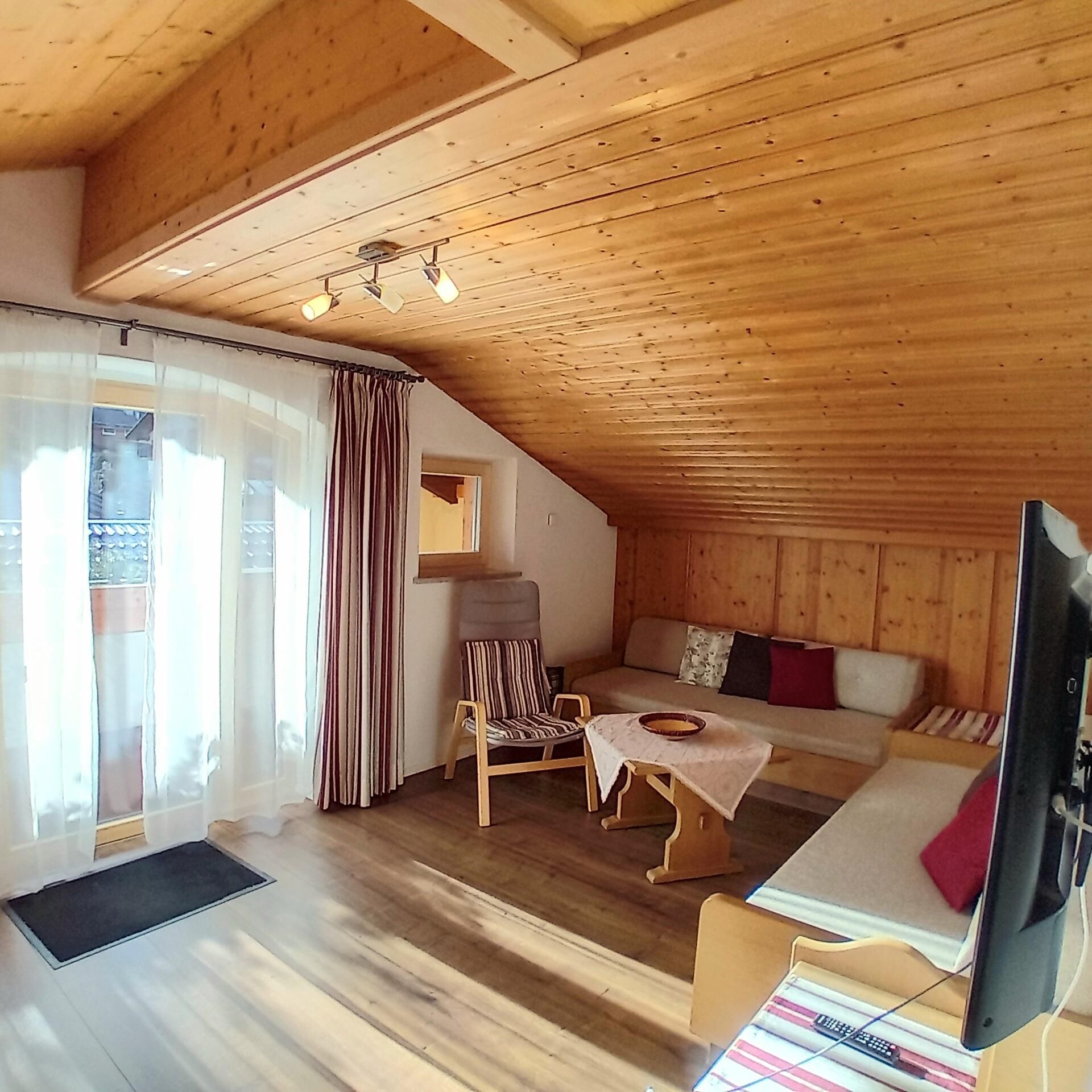 Die Ferienwohnung 'Krüner-Alm' befindet sich im 1. Stock und verfügt über ca. 50 m² für 2-4 Personen. Das Apartment besteht aus einem gemütlichen Wohnzimmer mit großer Eckbankgruppe, zwei Schlafcouchen für je 1 Person, sowie einem Schlafzimmer mit Doppelbett und Einzelbett. Bad mit Dusche/WC. Offene Küche sowie geräumiger Südbalkon. Unser Garten mit großer Liegewiese ist jederzeit nutzbar.