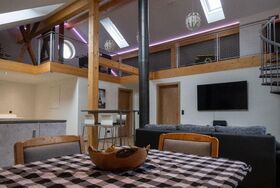 der Ferienwohnung ist der großzügige Wohnbereich, der mit bequemen Sitzgelegenheiten und einem großen Essbereich überzeugt. Hier können die Gäste gemeinsam Zeit verbringen, spielen oder einfach die Atmosphäre genießen. Die Wohnung bietet auch Zugriff auf einen Balkon oder eine Terrasse, von wo aus man einen atemberaubenden Ausblick auf die umliegenden Berge genießen kann. Dies ist besonders für Familien mit Kindern von Vorteil, die frische Luft und Platz zum Spielen benötigen.