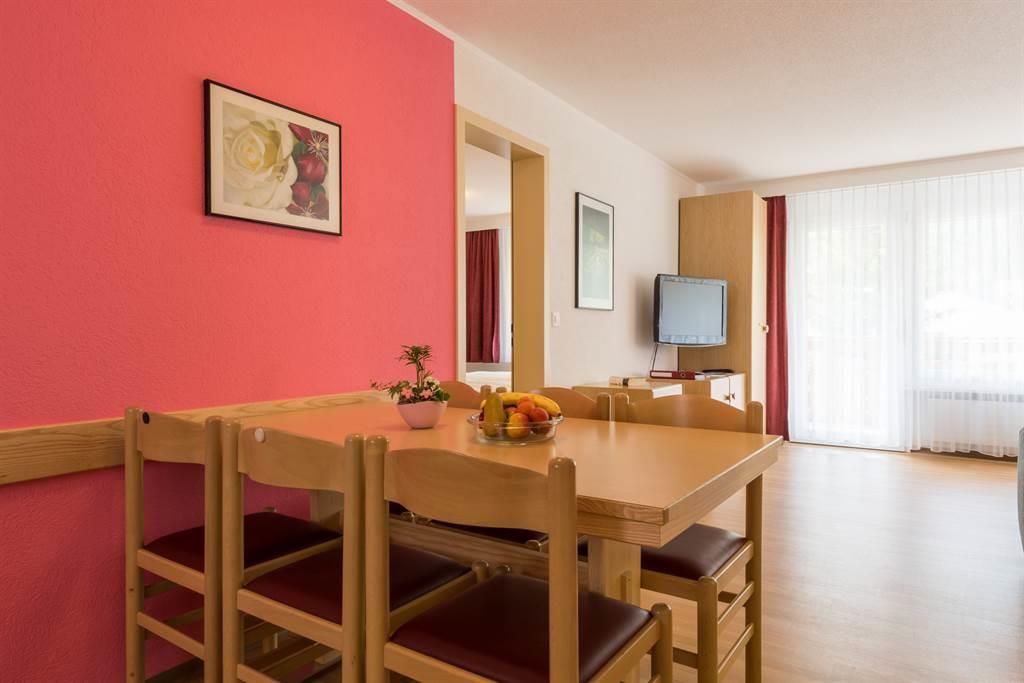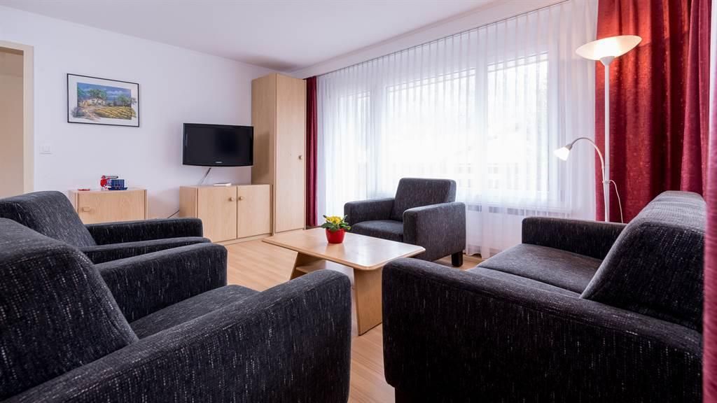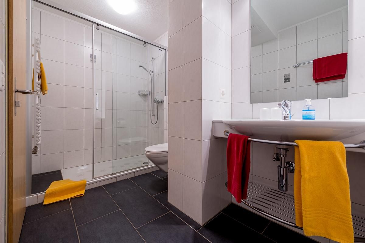 1 Dusche/WC ,Haarföhn und Südbalkon. Die Wohnung ist ausgestattet mit Kabel-TV, Radio mit CD Player und kostenlosem ADSL Wireless LAN Internetzugang. Die Wohnung ist gemütlich, modern und zweckmässig eingerichtet.