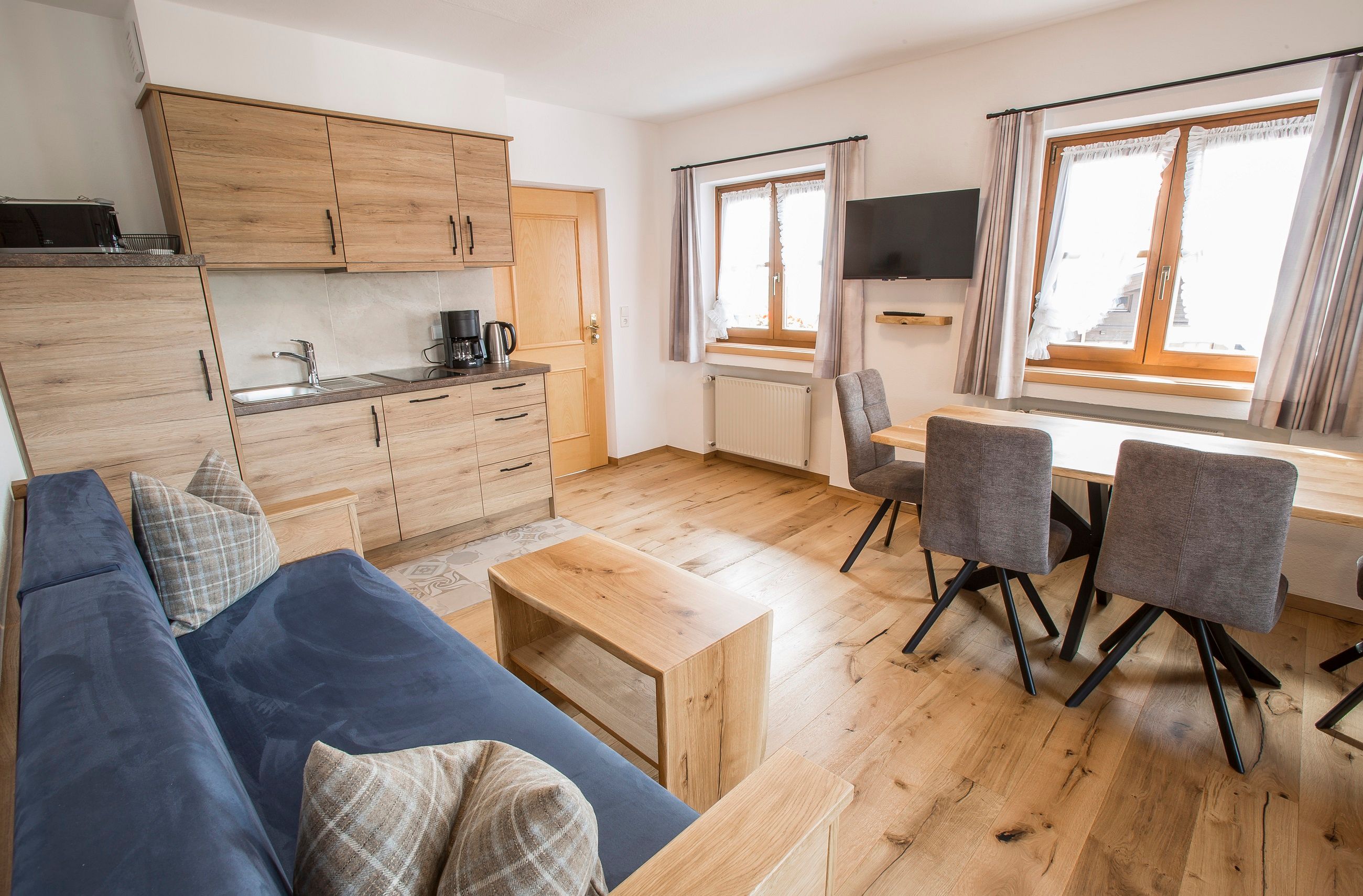 Unsere neugestalteten Ferienwohnungen im 2. und 3. Stock sind wie gemacht für einen schönen und erholsamen Urlaub in Reit im Winkl zu zweit oder auch mit Freunden und Familie. Der große Balkon lädt Sie ein die wunderschöne Bergwelt zu genießen und den Alltag hinter sich zu lassen. Morgens weckt Sie der verführerische Duft nach frischen Semmeln und Gebäck aus der hauseigenen Bäckerei. Somit beginnt Ihr Urlaubstag mit einem gemütlichen und vitalen Frühstück. Die Lage ist perfekt um den Ort und die Umgebung von Reit im Winkl per pedes zu entdecken und kennenzulernen. Viele Sommer- und Winteraktivitäten können Sie von der Haustüre aus starten um später dann sich mit einer guten Brotzeit oder einem schönen Abendessen zu belohnen. Ebenso sind die Ausflugsziele gut und unkompliziert zu erreichen.