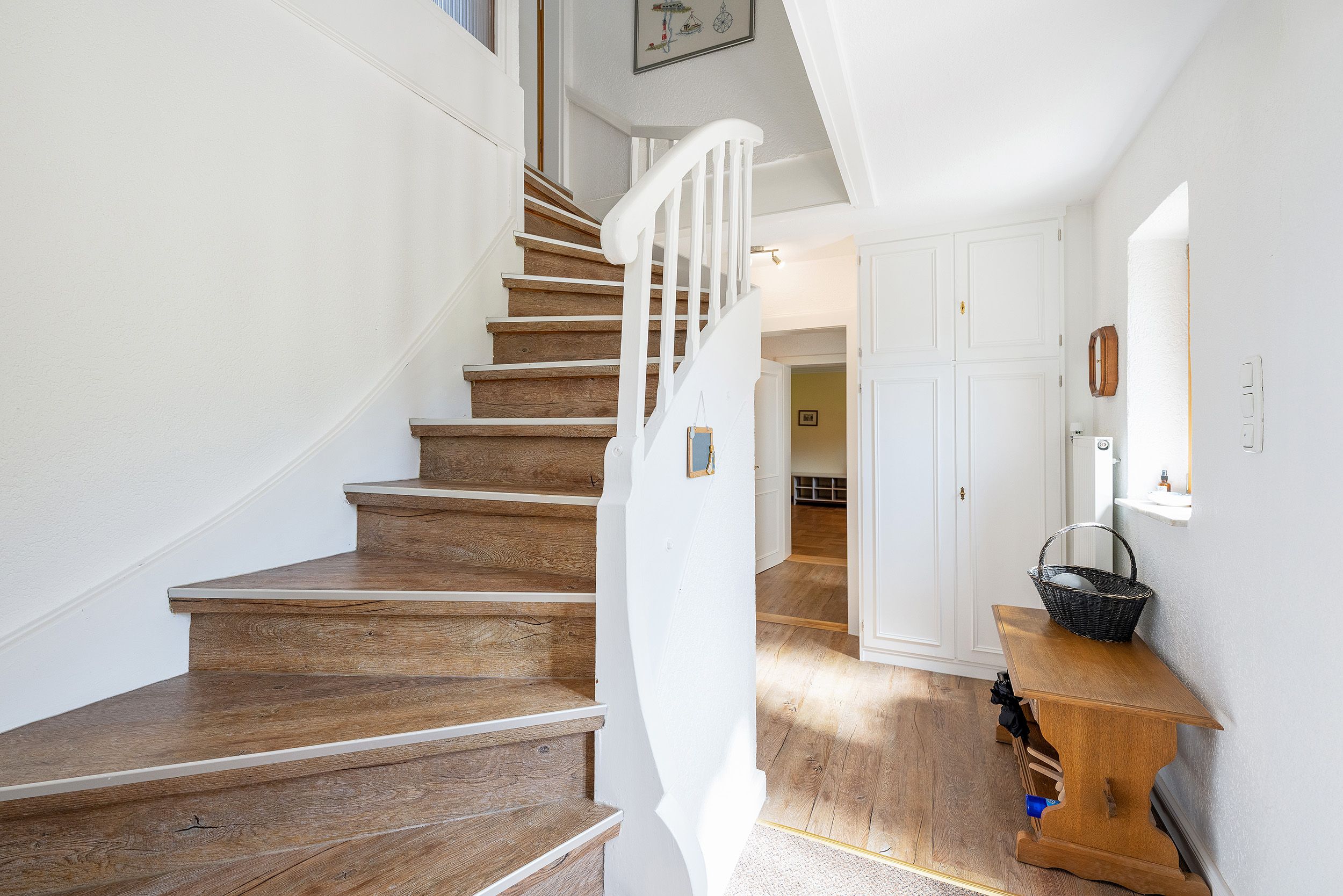 Der großzügige Garten bietet reichlich Platz zum Entspannen und Spielen, während ein eigener Parkplatz direkt am Haus zur Verfügung steht. Dank des vielen Stauraums ist auch für Sportgeräte oder Gepäck bestens gesorgt.