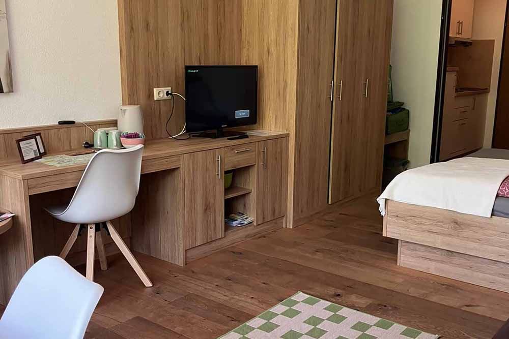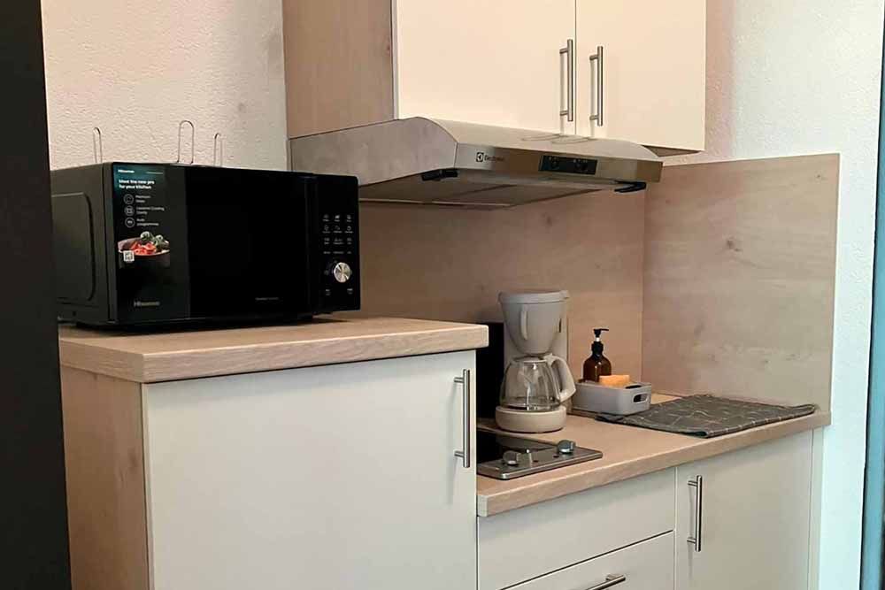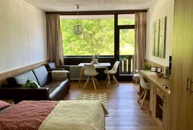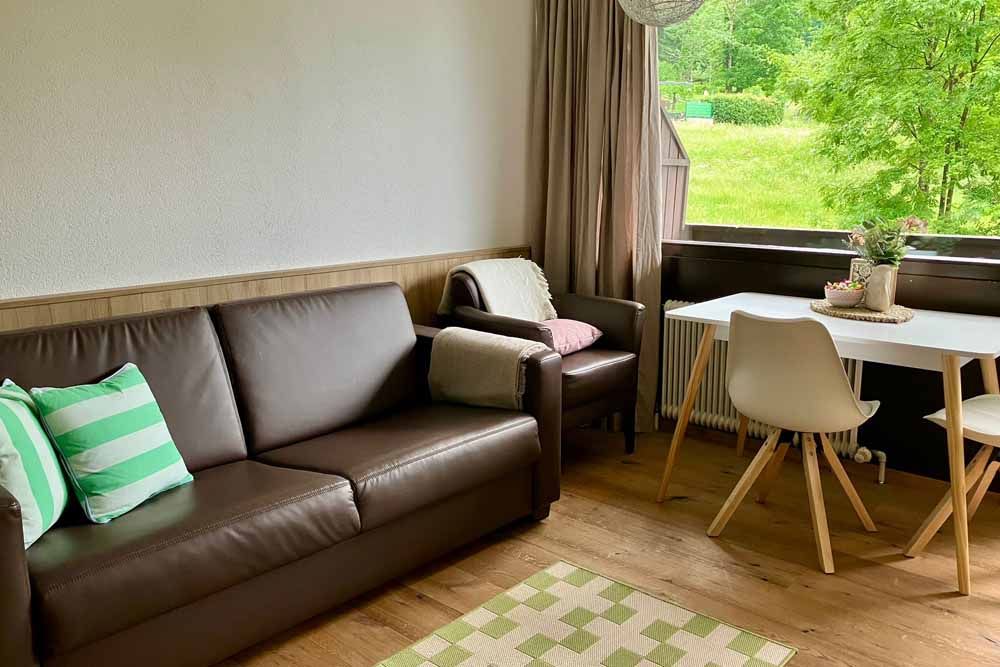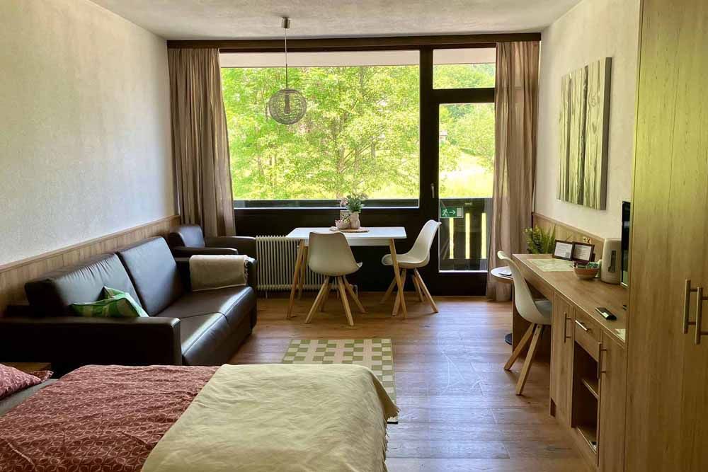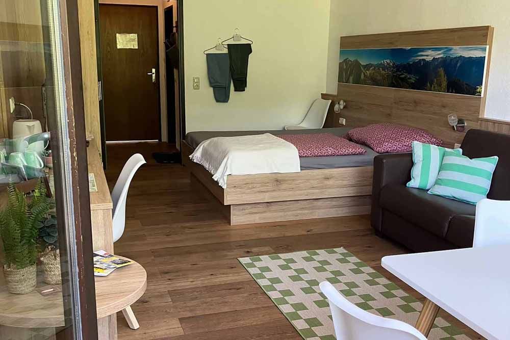 • 1 Wohn-/Schlafraum mit Doppelbett und Schlafsofa für bis zu 4 Personen
