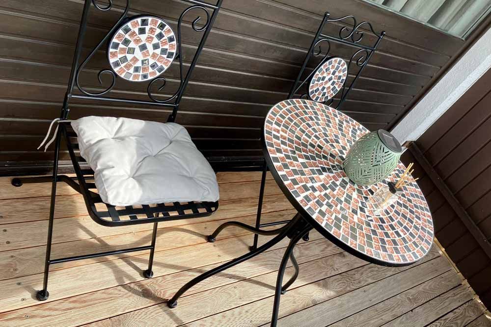 Der südwestlich ausgerichtete Balkon lädt zum Verweilen ein – mit wunderschönem Blick auf Berge, Wiesen und Wälder. Genieße deinen Morgenkaffee in der Sonne oder entspanne am