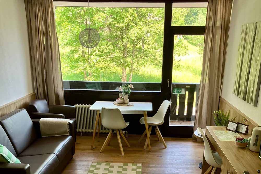 Besonders beliebt: der Balkon mit Bergblick, der zu entspannten Stunden in der Sonne einlädt. Ob nach einer Wanderung, nach dem Skifahren oder einfach zum Abschalten – hier passt der Name: Ankommen, Jogginghose anziehen, wohlfühlen!