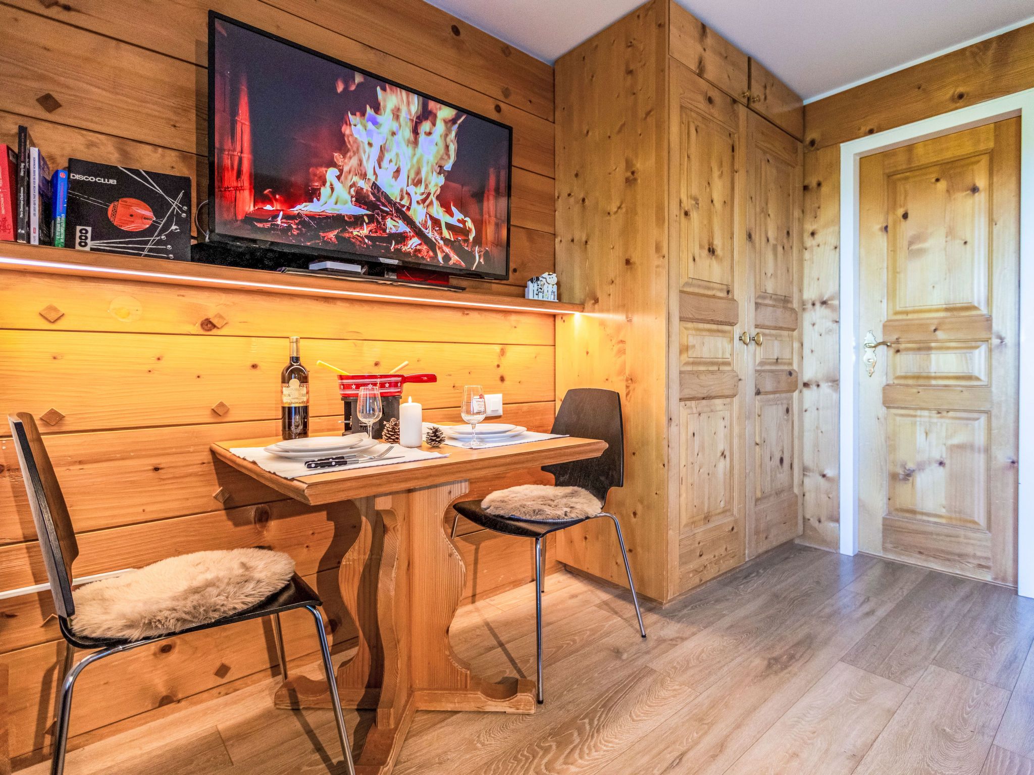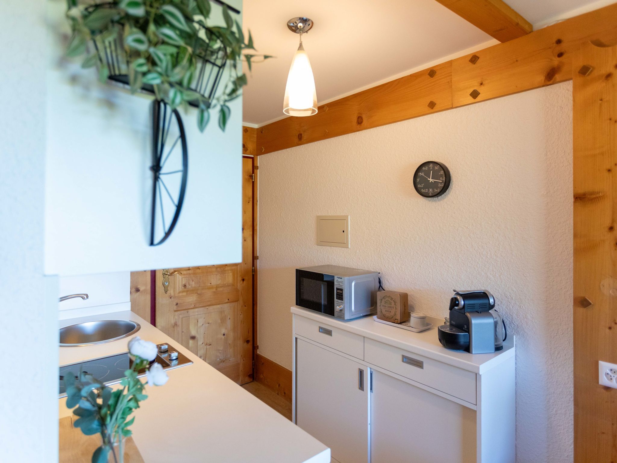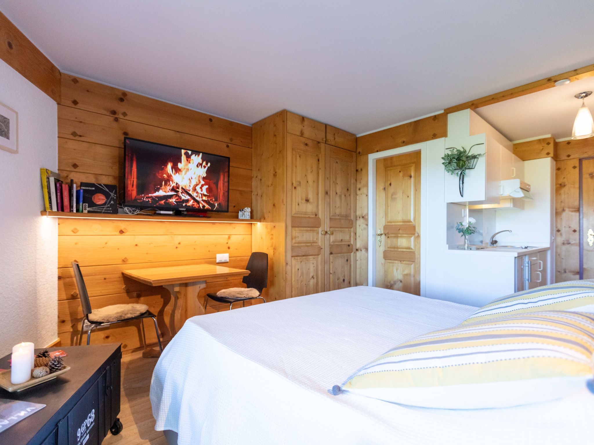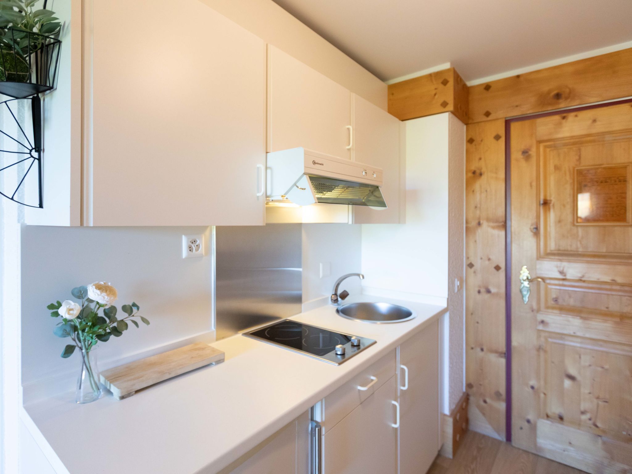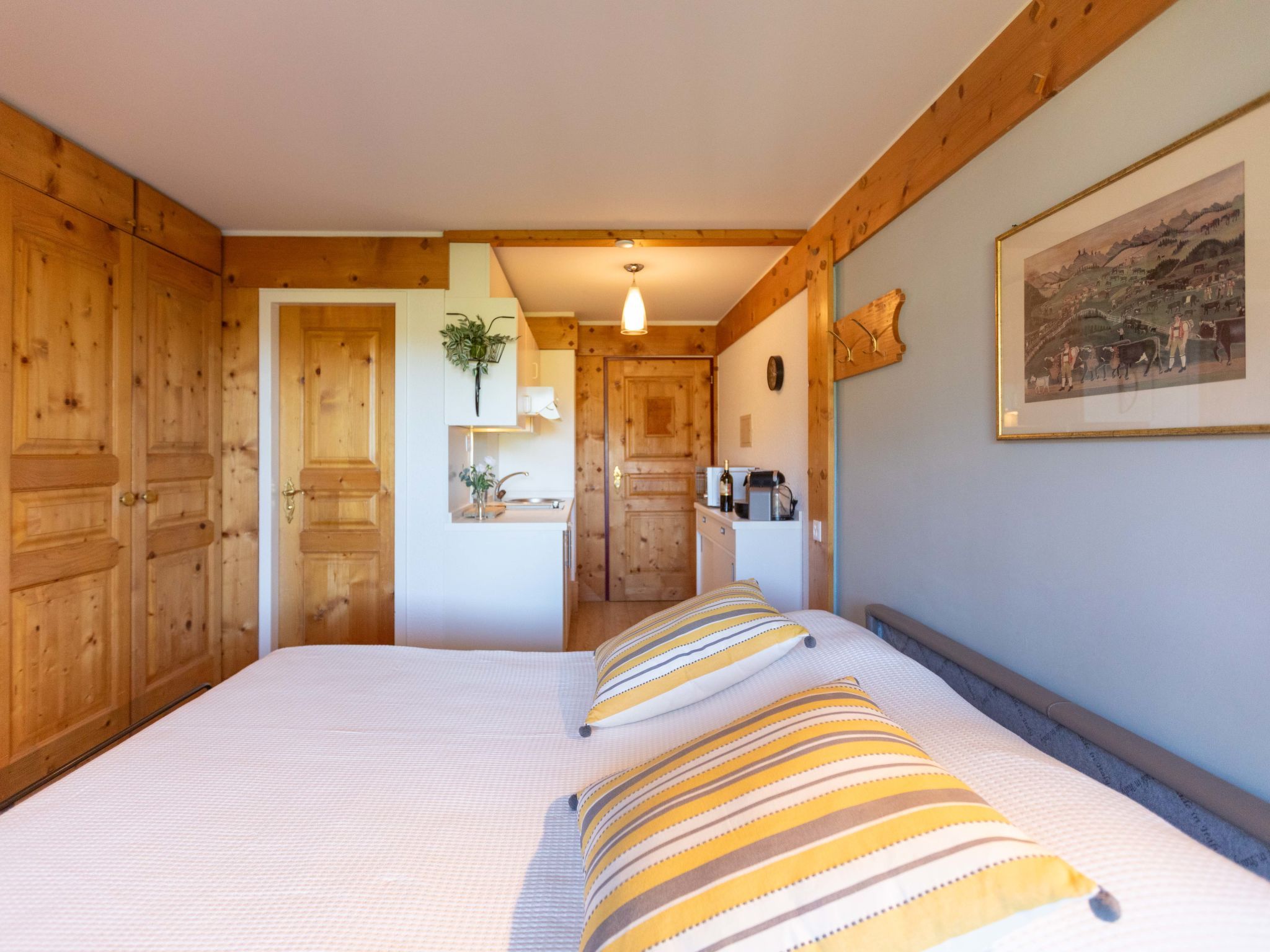 Le Bristol A25, 1-Zimmer-Studio 20 m2 im 2. Stock, Westlage. Zweckmässig und komfortabel eingerichtet: Wohn-/Schlafzimmer mit 1 Doppeldiwanbett (160 cm, Länge 200 cm), Kabel-TV. Ausgang zum Balkon, Richtung Westen. Kleine, offene Küche (2 Kochplatten, Toaster, Wasserkocher, Mikrowelle, elektrische Kaffeemaschine, Kapseln für die Kaffeemaschine (Nespresso) extra, Racletteofen, Fondue Set (Käse)). Dusche/WC. Kleiner Balkon, Westlage. Balkonmöbel. Sehr schöne Sicht auf die Berge, die Landschaft und die Ortschaft. Zur Verfügung: Haartrockner. Internet (WLAN, gratis). Bitte beachten: Nichtraucher-Unterkunft.