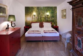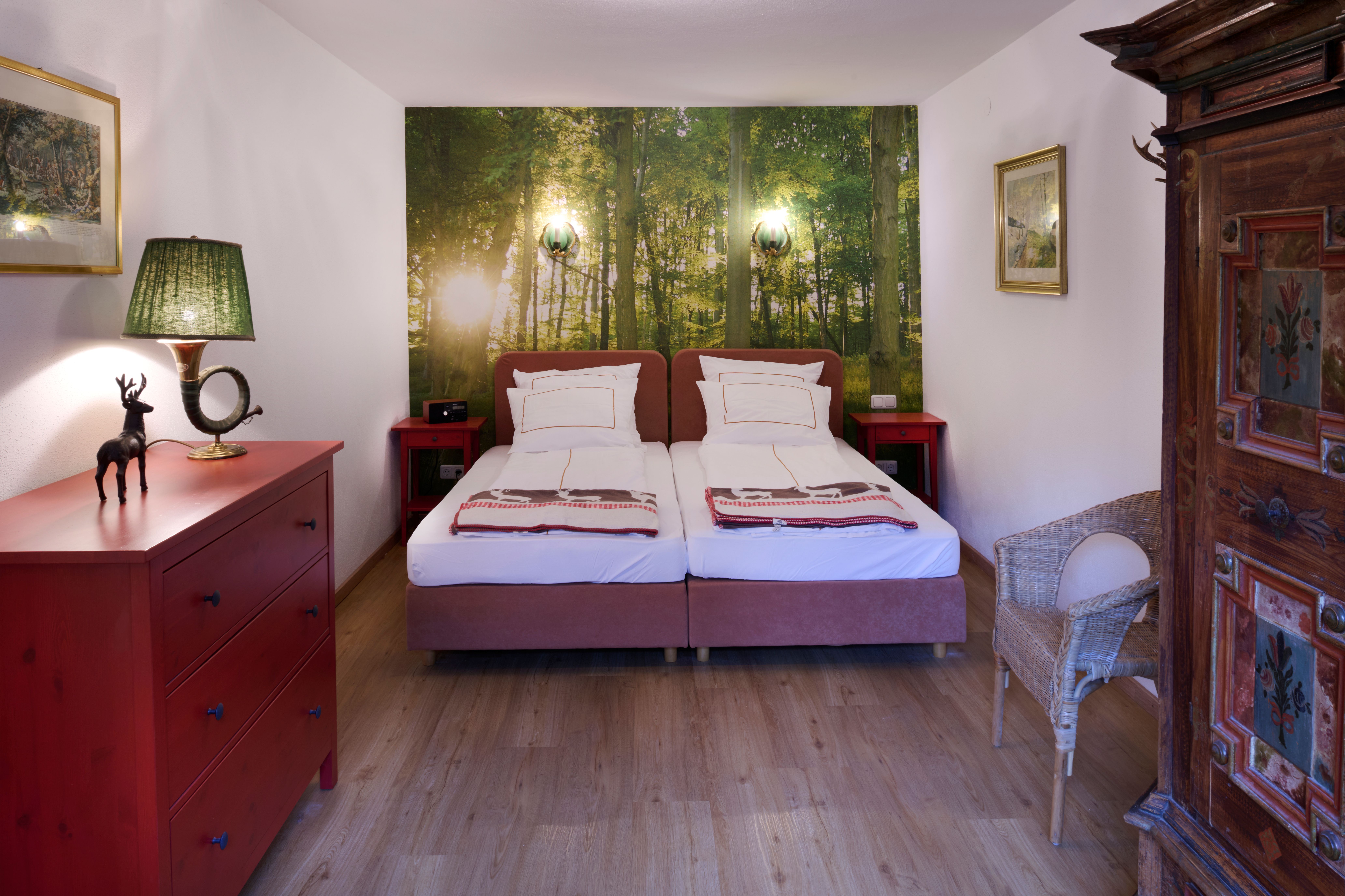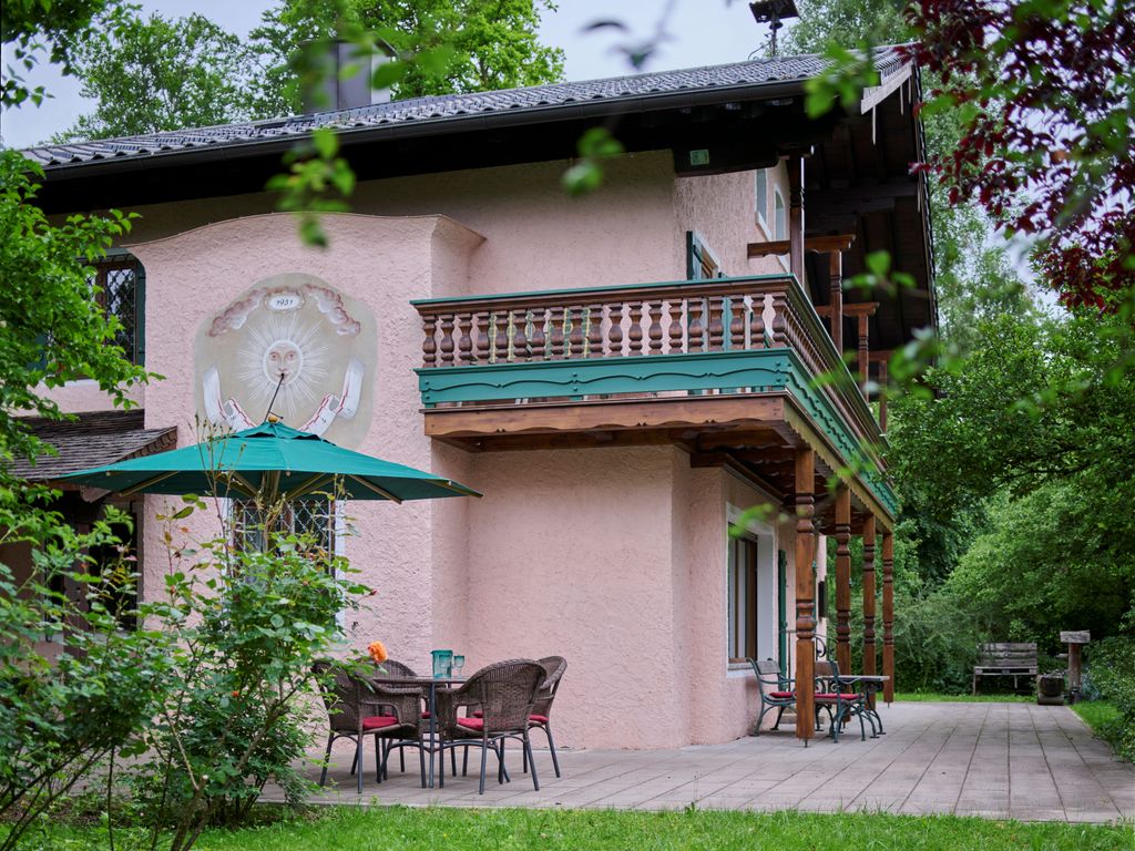 Als Gast im Landhaus Ruperti genießen Sie die privilegierte Lage in einem idyllischen Parkgrundstück im Luftkurort Waging am See. Auf der großzügigen Terrasse können Sie die Stille wahrnehmen, ausspannen und regenerieren beim Blätterrauschen der alten Bäume. Ruhig gelegen und doch ortsnah. Nur 500 Meter vom historischen Ortskern entfernt sind alle Gastronomiebetriebe und Geschäfte fußläufig zu erreichen. Die Ferienwohnung im exklusiven Landhaus-Ambiente ist mit Liebe zum Detail und komfortabel im jagdlichen Flair eingerichtet. Im Wohnbereich bieten eine bequeme Couchgarnitur, ein Relaxsessel aus Leder im Lese-Erker und ein separater Essbereich ein stilvolles und sehr behagliches Wohnambiente. Für moderne Unterhaltung sorgen Flachbild-Smart TV, Stereoanlage mit CD-Player und kostenloser WLAN-Zugang. Lesestoff und eine kleine Spielesammlung runden das „Schlechtwetter“-Angebot ab. Auch die perfekt ausgestattete Küchenzeile lässt keine Wünsche offen. Die beiden Themen Schlafräume, eines im Wald- und das zweite im See-Ambiente sind mit bequemen Boxspringbetten ausgestattet und für Allergiker geeignet.