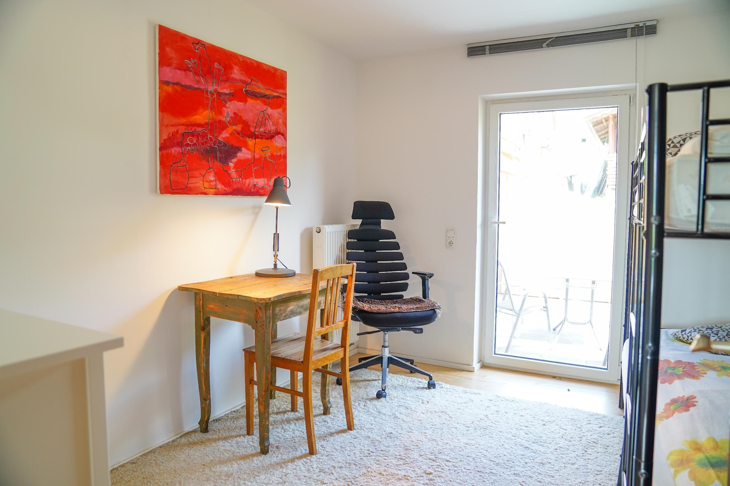 Auf dem Balkon genießen Sie auf über zwanzig Quadratmetern mit Südwestausrichtung das Panorama des Bayerischen Waldes: Blick auf Rabenstein, den Hennenkobel und die Stadt Zwiesel. Ein Essplatz lässt den Sonnenuntergang an warmen Sommerabenden zum Erlebnis werden. Zwei Teakholzstühle lassen sich zur Liege umklappen. Der große Haselnussstrauch oder ein Sonnenschirm spenden Schatten. Ebenso die Schiebeläden, die an heißen Sommertagen der Wohnung innen ein mediterranes Flair geben. Auf der Rückseite der Wohnung steht eine zweite Terrasse zur Verfügung als Rückzugsort zum Chillen.