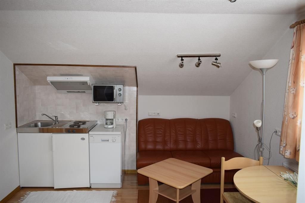 Ca. 35 m², 1 Wohnraum mit Kochnische, Microwelle,Kaffemaschine usw. 1 Schlafzimmer mit Badezimmer/WC, Balkonzugang von beiden Räumen. Genießen Sie am Balkon die Nachmittagssonne.