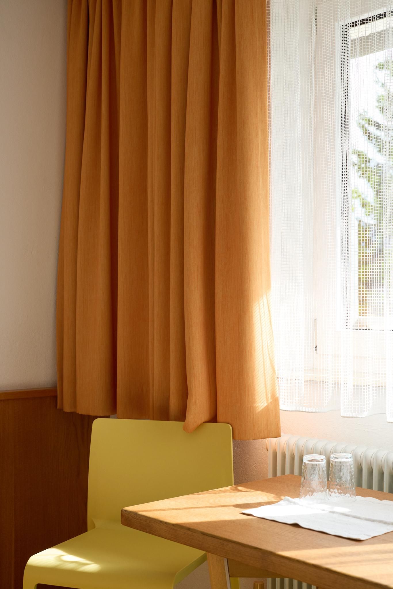 Die gemütlichen Zimmer (ca. 22 m2) im traditionellen Stil haben einen Balkon, sind mit Dusche/WC, Sat-TV, Flatscreen, Telefon, ausgestattet. Sie können als Doppel und Einzelzimmer genutzt werden.