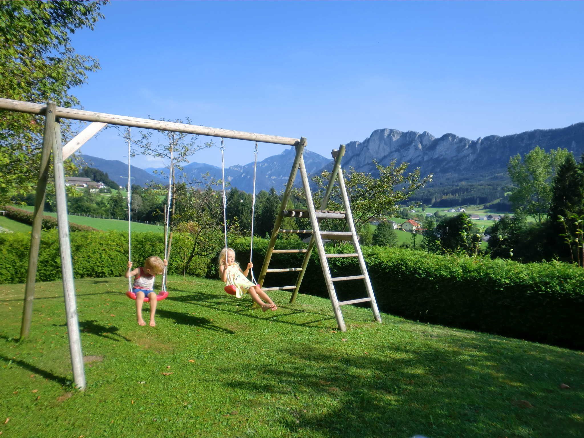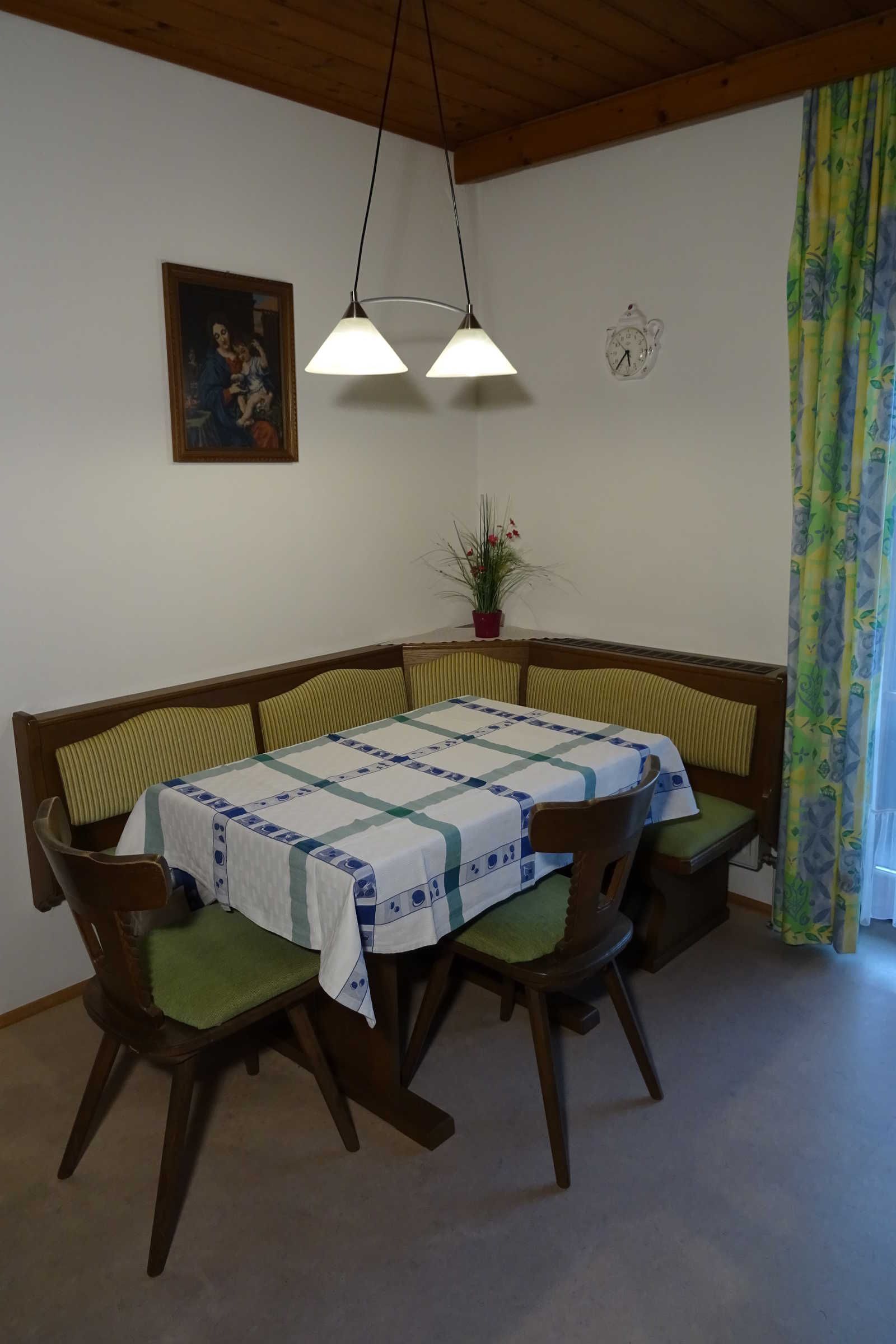 Die Ferienwohnung ist im Landhausstil eingerichtet. Die süd-/ostseitige Lage garantiert ganztägig Sonnenlicht und der zur Ferienwohnung gehörige Balkon bietet eine traumhafte Aussicht auf die Berge und das Mondseeland. In der komfortablen Ferienwohnung mit Kabel-TV steht WLAN kostenlos zur Verfügung. Die Wohnung ist für bis zu 3 Personen geeignet, eine weitere Person (Kind/Jugendlicher) ist auf Anfrage möglich. Auf Wunsch kann ein zweites Schlafzimmer dazu gebucht werden (Preis auf Anfrage).