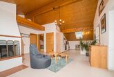 Wohnbereich mit Fernseher und Sitzgelegenheiten für gemütliche Abende