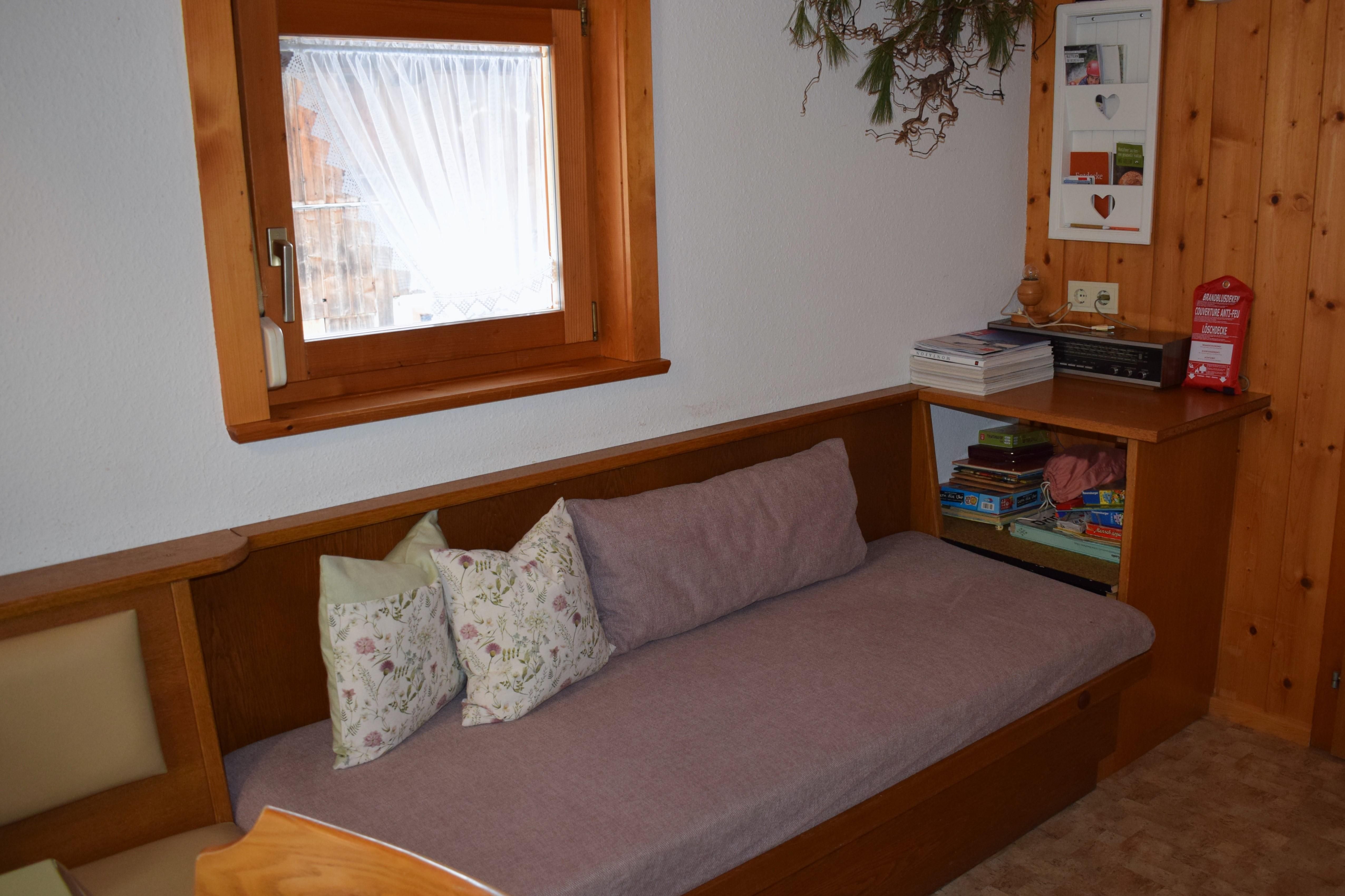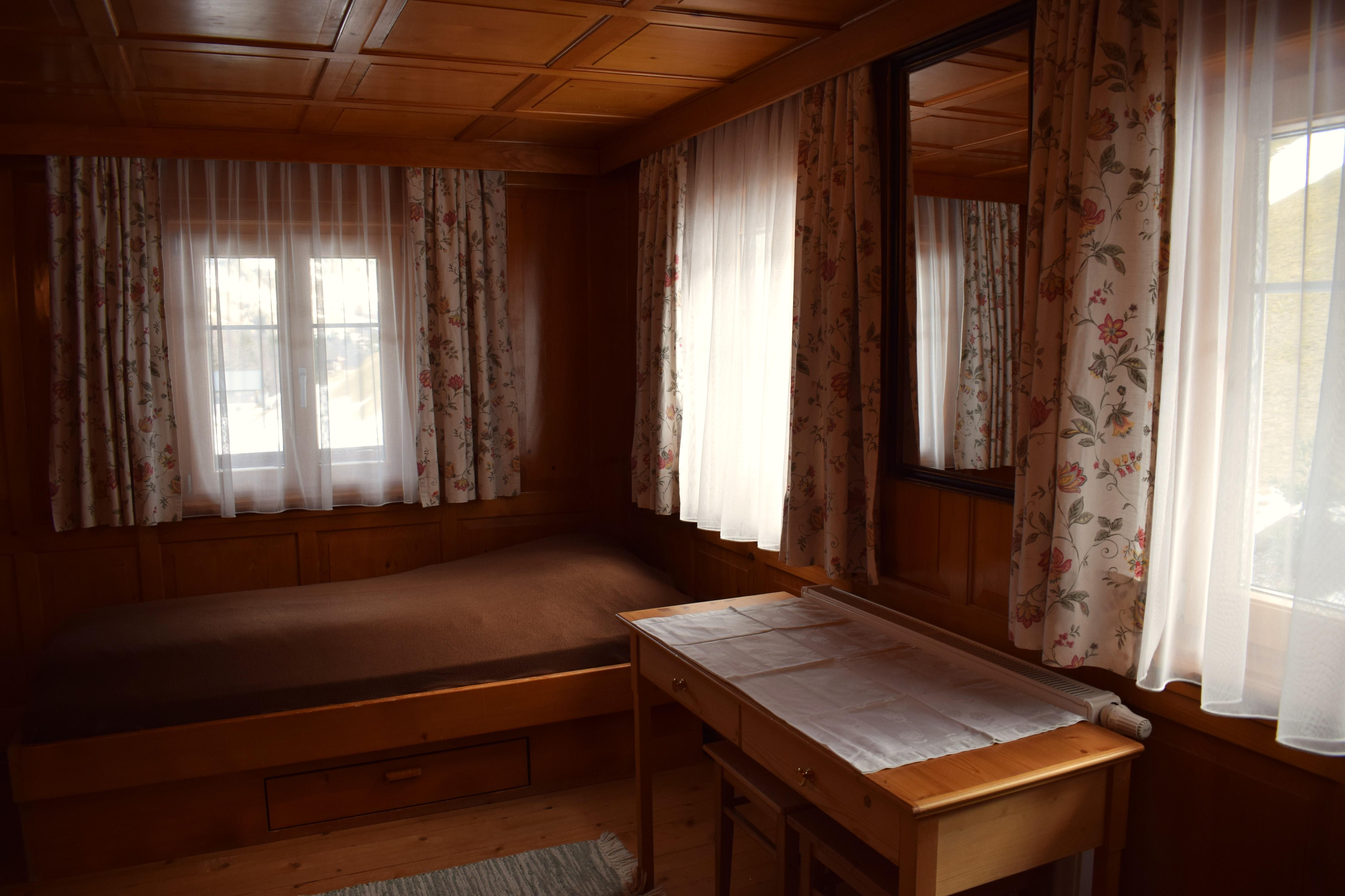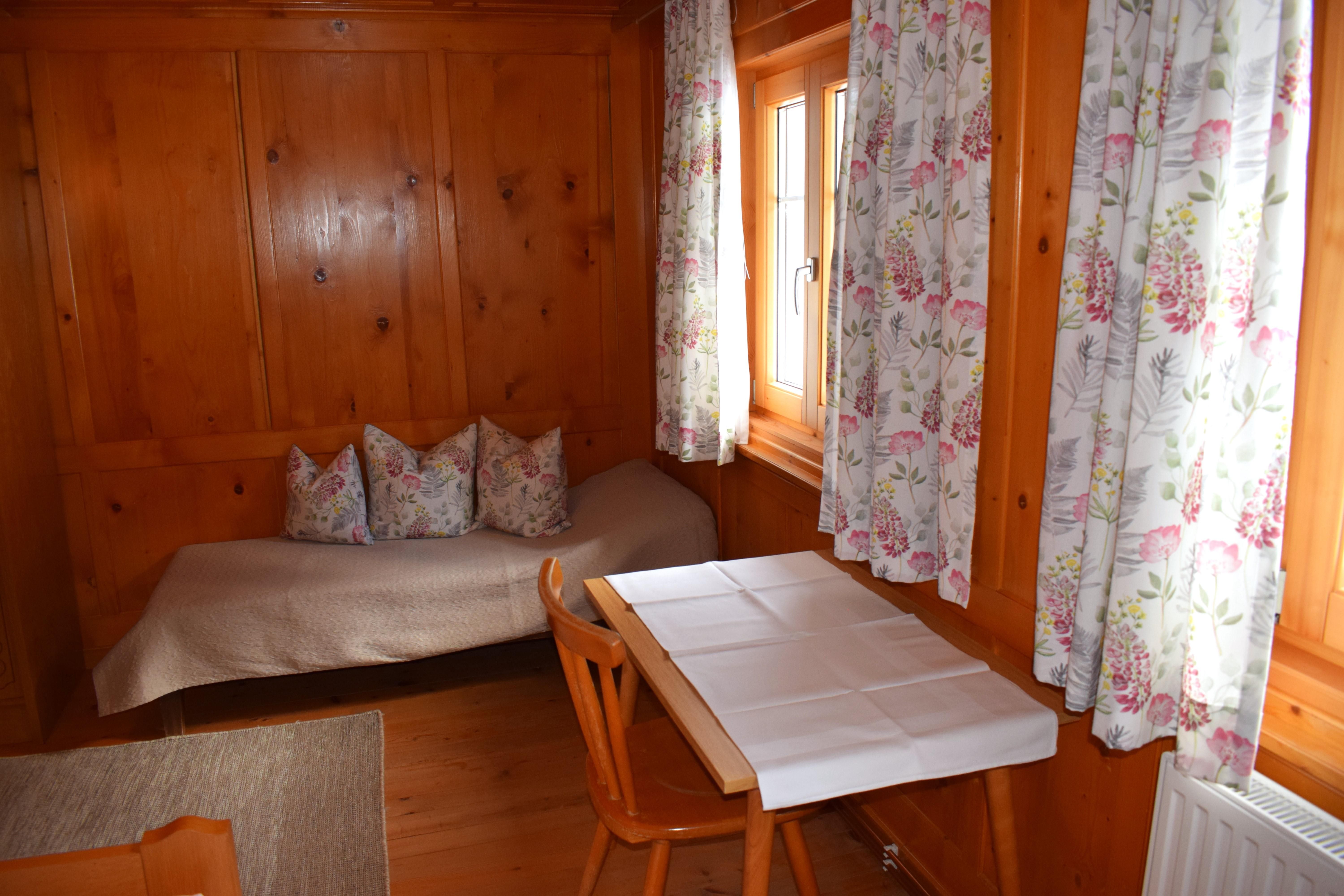 Eine Wohnküche, ein Dreibettzimmer, ein Doppelzimmer, ein Einzelzimmer (Bett nur 1,90m lang), Dusche, separates WC, Waschraum, kleine Garderobe und ein Trockenraum für Ski und Schuhe sind vorhanden.