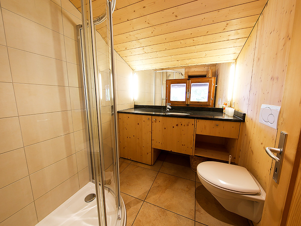 Es besteht die Möglichkeit, Wi-Fi zu nutzen. Im 1. Stock stehen Ihnen 3 Schlafzimmer mit 7-8 Betten zur Verfügung. Ein grosses Schlafzimmer mit Doppelbett, ein weiteres Schlafzimmer mit zusammenstellbarem Doppelbett plus zwei weiteren Hochbetten und eine sehr kleine Schlafkammer (6qm) mit eingebautem Stockbett und einem Panoramafenster mit Blick auf den Gotschnagrat. Moderne fussbodenbeheizte Dusche mit WC, Waschtisch und Waschmaschine, sowie ein separates WC.