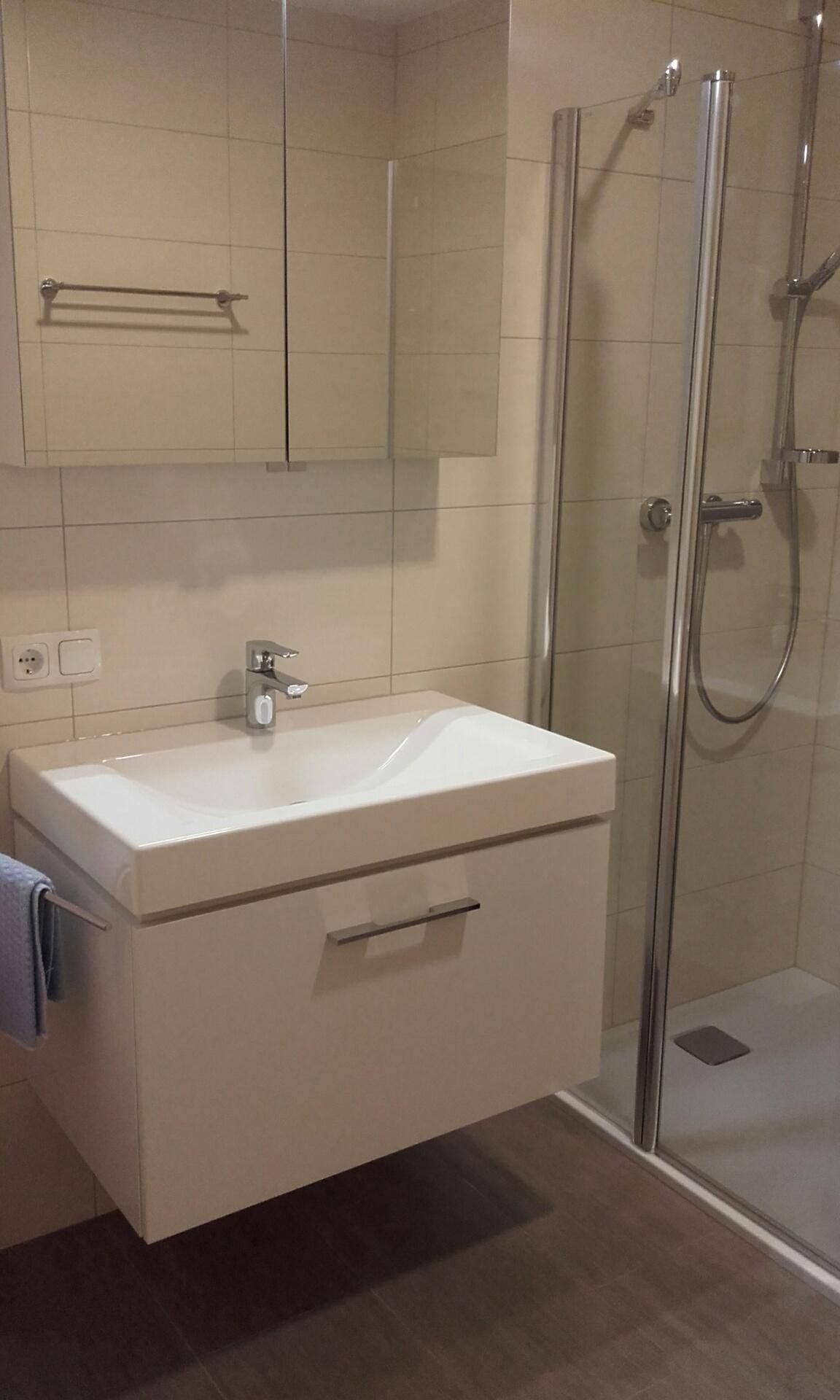 ebenerdige Wohnung mit Zugang zum Garten, zwei getrennte Schlafzimmer, Dreibettzimmer und Doppelbettzimmer, Dusche und WC getrennt, Küche, Fußbodenheizung