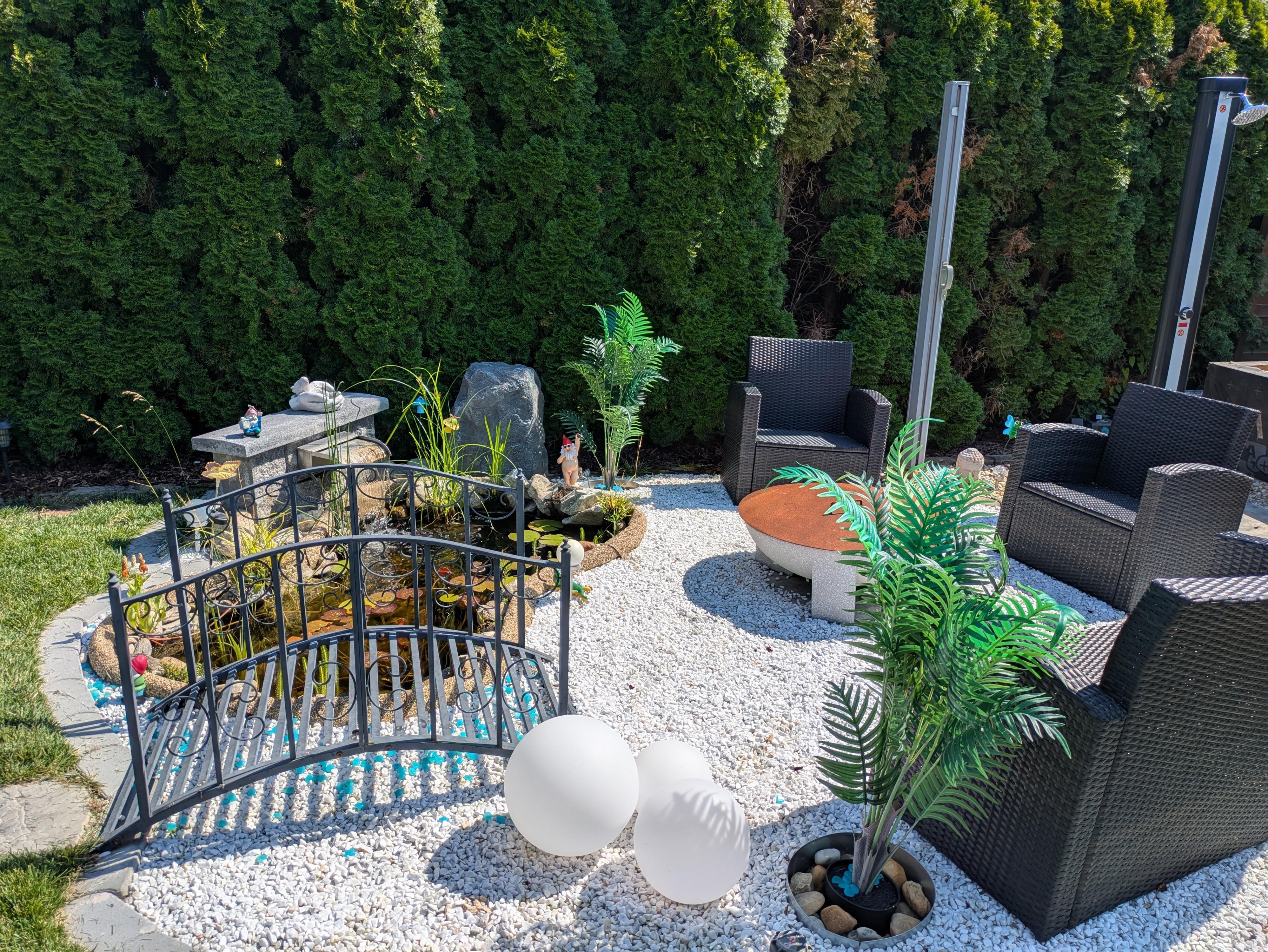 Es gibt einen Garten, einen Grill, eine Feuerstelle, Sitzmöglichkeiten im Garten, einen kleinen Teich mit Fischen. Es gibt 2 Schmuckstücke in der Unterkunft, das sind die Whirlwanne im Bad für 2 Personen und das 200x220 extra große Wasserbett. Klimaanlage ist nur in diesem Zimmer verfügbar.