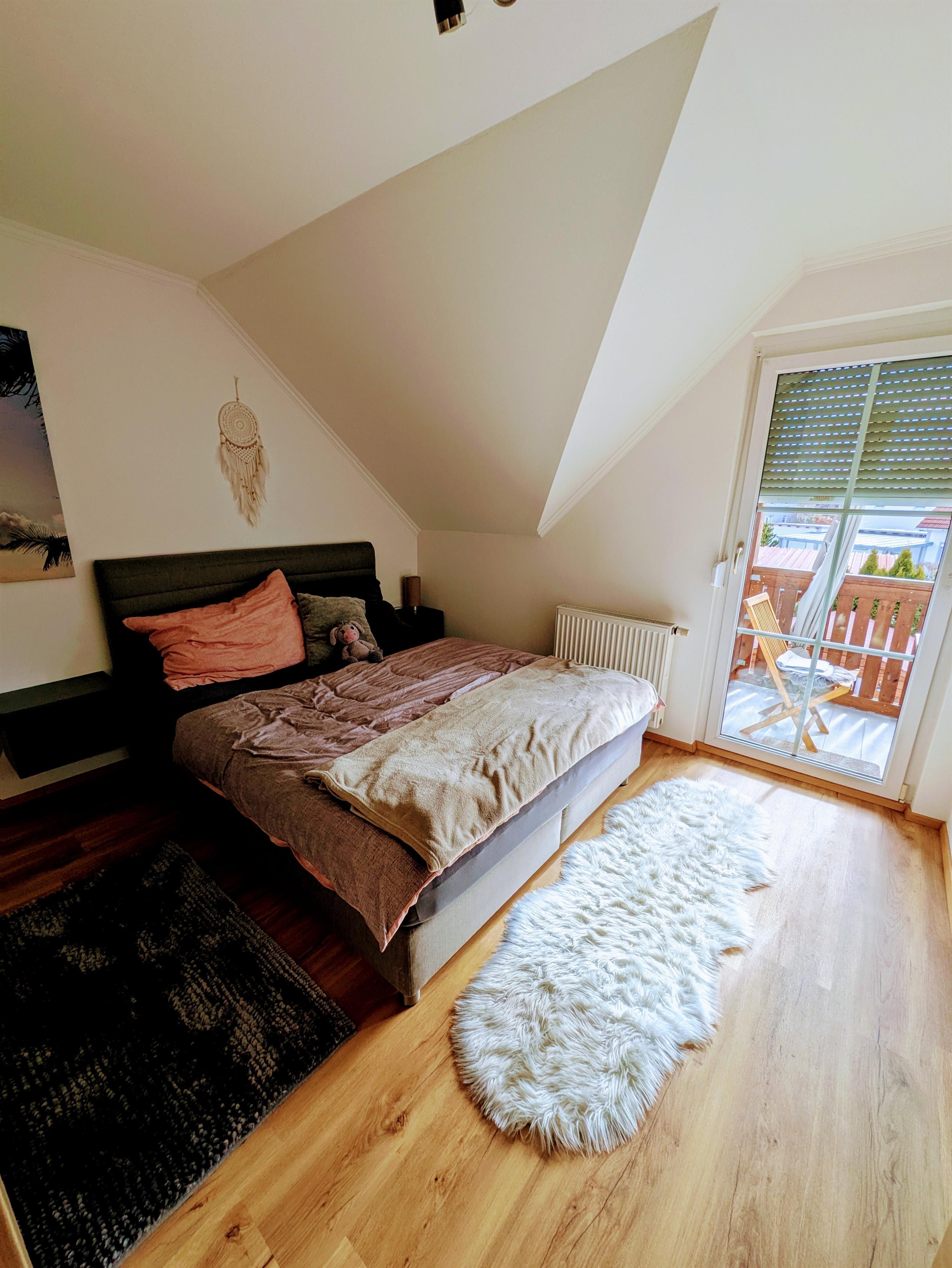 Zimmer 1: Französisches Doppelbett mit Zugang zum Balkon