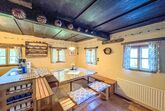 Schipplbadstube, 5-Zimmer-Haus. Komfortabel eingerichtet: Eingang. Esszimmer mit Esstisch und Holzofen. Wohnzimmer mit TV. Offene Küche (Backofen, 4 Glaskeramikplatten, Toaster, Wasserkocher, Mikrowelle, elektrische Kaffeemaschine). Dusche/WC, Doppelwaschbecken. E-Heizung, Holzheizung. Obergeschoss: 2 Zimmer, jedes Zimmer mit 1 Bett und 1 Doppelbett. 1 Zimmer mit 1 x 3 Etagenbetten. Terrasse. Terrassenmöbel. Schöne Sicht auf die Berge. Zur Verfügung: Waschmaschine, Holz (gratis). Bitte beachten: Nichtraucher-Unterkunft. Rauchmelder. Das Haus ist ca. 400 Jahre alt, offenes Feuer sind innen und außen absolut verboten. Kleiner Bach am Grundstück, Ruheplatz für Yoga oder Meditation vorhanden. Bei großem Schneefall kann es sein, dass die letzten 300m nur zu Fuß erreichbar sind. Kein WLAN. 50203-050020-2020