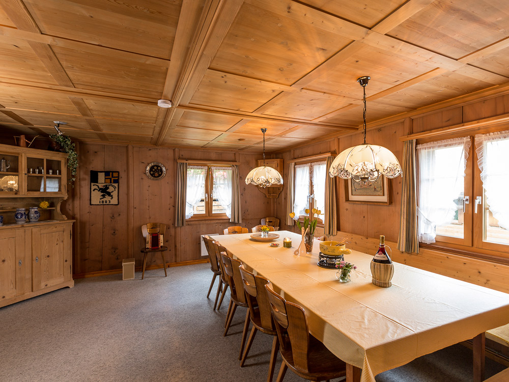 Eingangsbereich mit Garderobe, voll ausgestatteter Wohnküche, elektrischem Herd und Holzherd, Backofen, Kühlschrank, (kein GS). Gemütliches Esszimmer, Wohnzimmer mit verschiedenen Sitzgelegenheiten und Kachelofen; Spielzimmer mit Dart und Tischtennis. 6 Schlafzimmer mit 19 Betten, 1 Bad mit Badewanne/ Lavabo, 1 Bad mit Dusche/ Lavabo, 1 sep. WC. Kinderbetten und Hochstühle stehen gratis zur Verfügung. Geheizt wird mit Holz und elektrisch. Genügend Aussenparkplätze vorhanden. Gartensitzplatz mit Kinderspielplatz, Chemineegrill und überdachter Laube. Ankommen - Abschalten - Ausspannen - Cresta Pur! Wir heissen Sie HERZLICH WILLKOMMEN im Ferienhaus Cresta.
