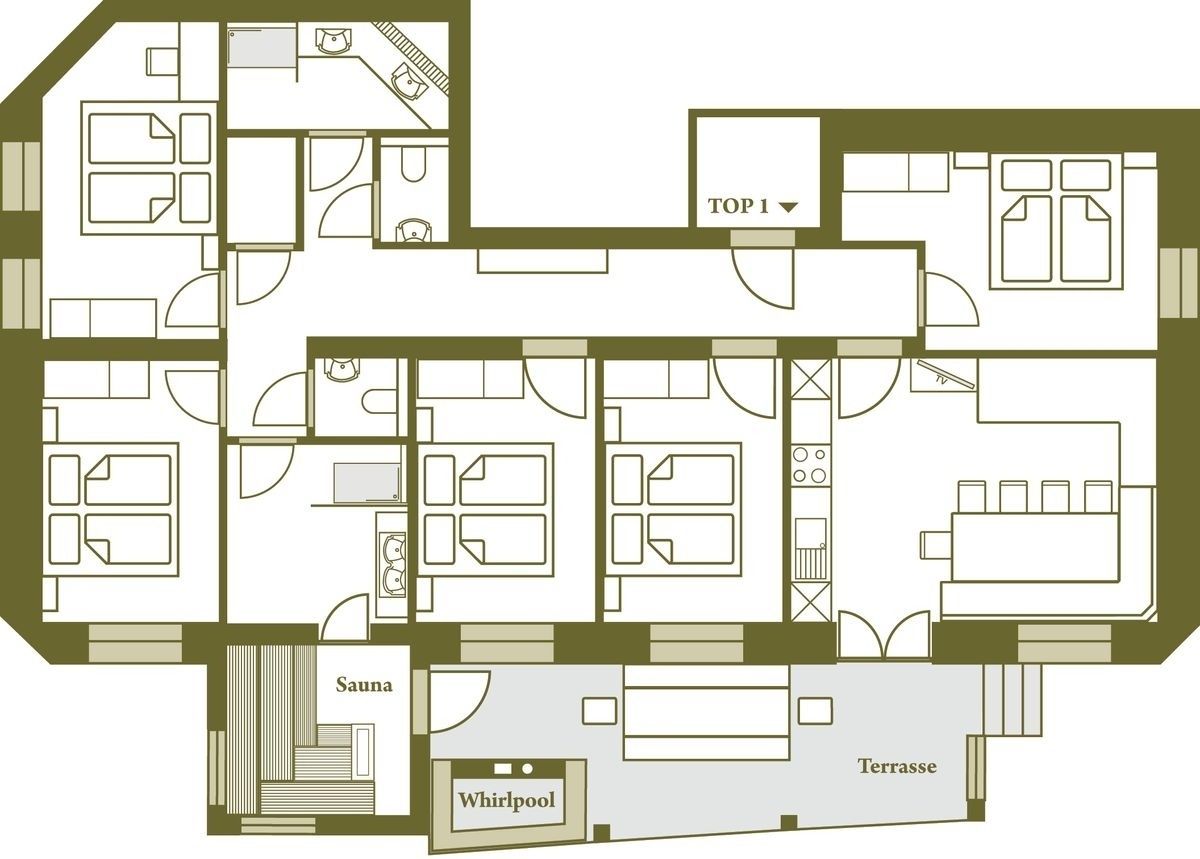 Luxus-Ferienwohnung direkt an der Skipiste in Saalbach-Hinterglemm – privates SPA, Sauna & Outdoor-Whirlpool für bis zu 10 Personen. Drei Schlafzimmer mit Doppelbett, ein Vierbettzimmer, zwei moderne Bäder und ein heller Wohnbereich mit Flatscreens in allen Zimmern bieten höchsten Komfort. Genießen Sie entspannte Stunden in der Zirbenholz-Sauna, im Outdoor-Whirlpool oder auf der möblierten Terrasse. Mit Fußbodenheizung, Skiraum, Brötchenservice sowie Waschmaschine und Trockner ist diese Ferienwohnung perfekt für Familien und Freundesgruppen, die Skiurlaub und Luxus verbinden möchten.