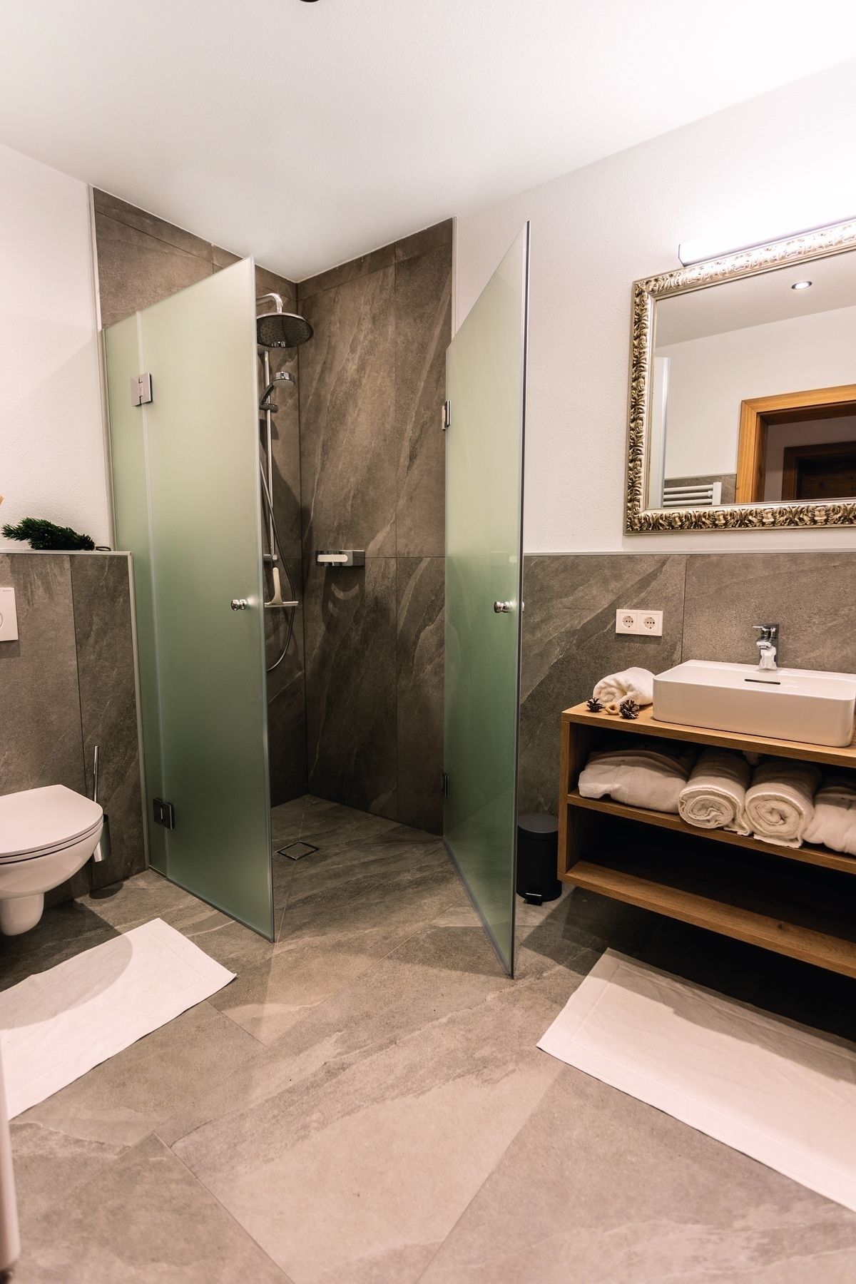 1 Schlafzimmer mit Doppelbett & Bad mit bodengleicher Dusche (EG)