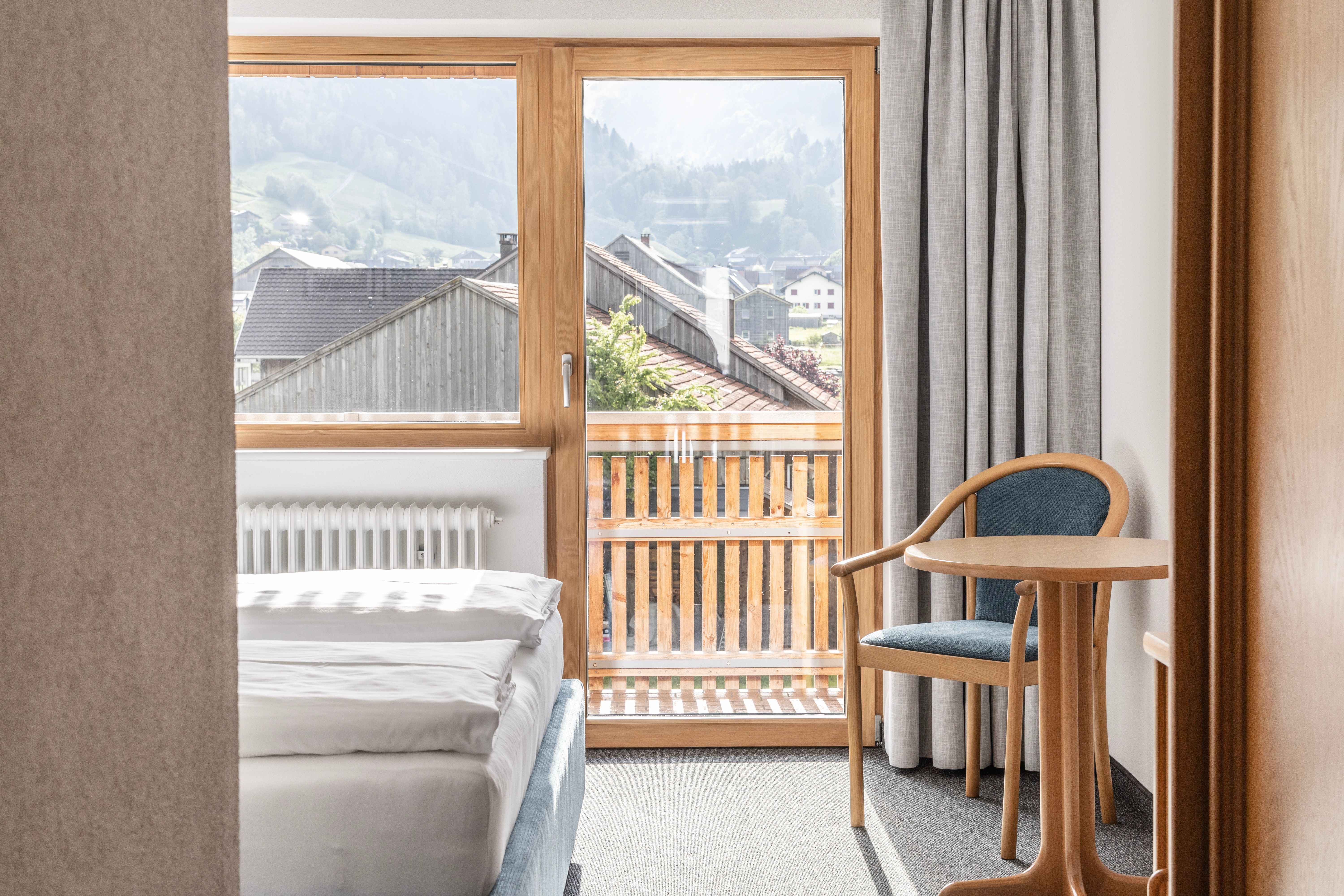 Drei Doppelzimmer jeweils mit eigener Dusche/ WC, Fön, TV, Safe und Balkon.