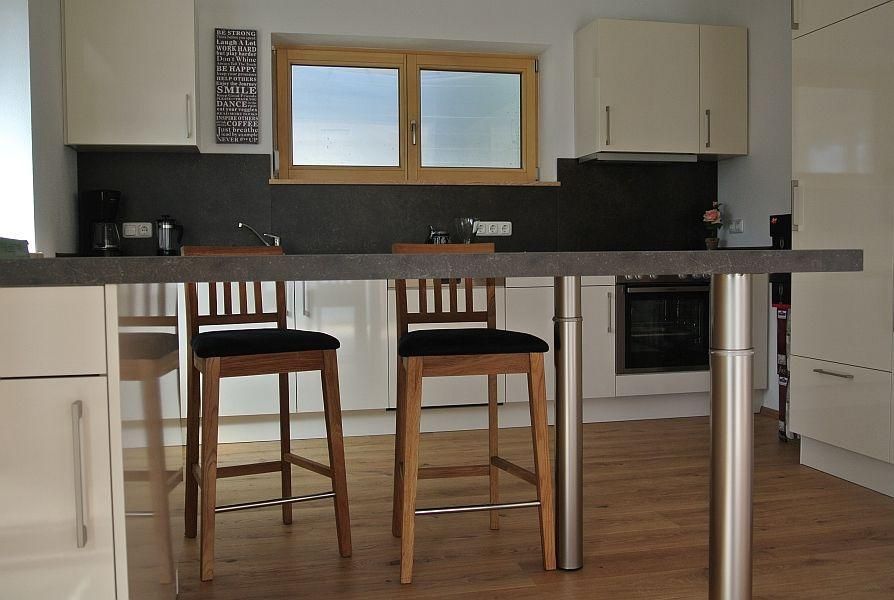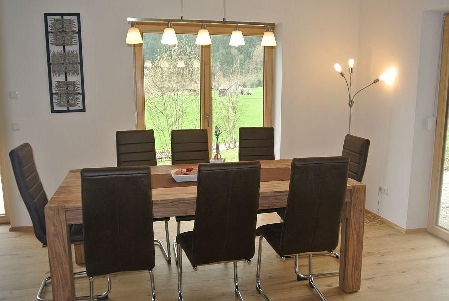Auf 135 qm² Gesamtfläche erwarten Sie großzügige, modern und exklusiv eingerichtete Räumlichkeiten, die bis zu 6 Personen bequem Platz bieten. Der Wohn- und Essbereich begeistert mit Holzboden und einem großen Esstisch, von dem aus Sie die unverbaubare Gebirgspanorama genießen können. Eine Fußbodenheizung durchzieht das gesamte Haus, während ein Kaminofen für zusätzliche Gemütlichkeit sorgt. Die Küche ist mit modernen Annehmlichkeiten wie Kochfeld, Kühlschrank, Spülmaschine und allen nötigen Utensilien komplett ausgestattet – kochen Sie mit Blick ins Grüne. Ein komfortables Bad mit Dusche befindet sich im Erdgeschoss.