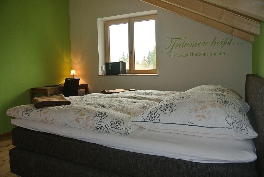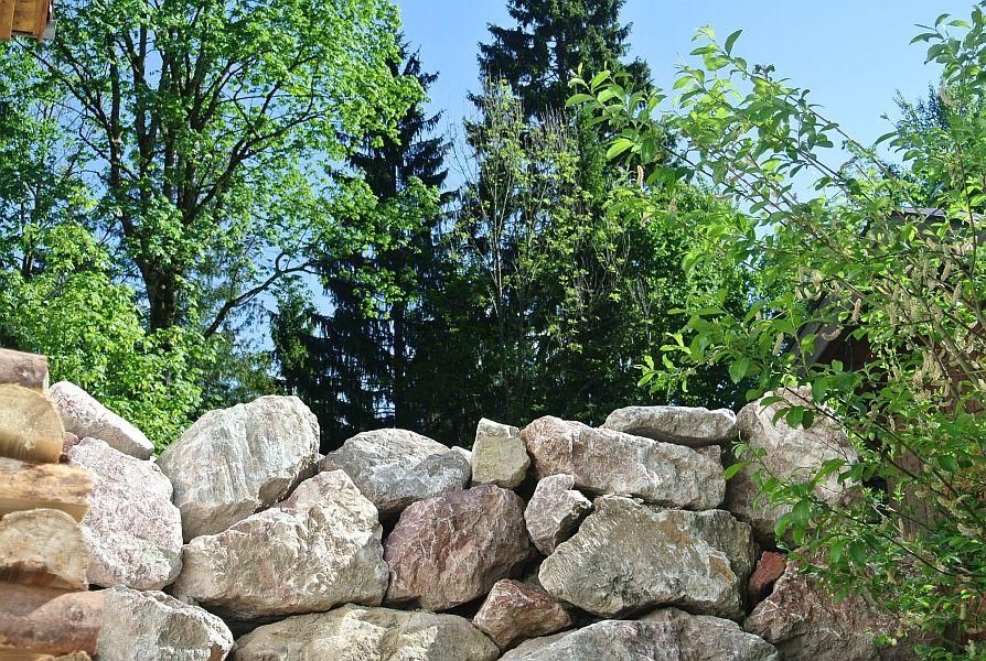 Der Außenbereich des Hauses bietet eine sichtgeschützte Terrasse und eine weitere Westterrasse mit direktem Zugang vom Wohnzimmer, die den Blick auf Wiesen und Felder freigibt. Ein Balkon ermöglicht es, die Morgensonne und beeindruckende Panoramablicke auf die umliegende grüne Natur zu genießen. Für Ihre Fahrzeuge stehen ein Carport und weitere Stellplätze zur Alleinnutzung bereit, und auch Ihre Haustiere sind in unserem Ferienhaus herzlich willkommen.