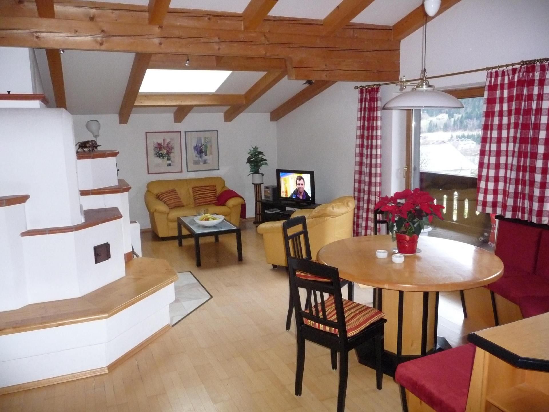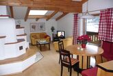 Auf rund 100 qm befinden sich ein großer gemütlicher Wohn/-Essbereich mit Einbauküche, ein Kachelofen, zwei Schlafzimmer, zwei WCs und ein Badezimmer. Die komplett möblierte Wohnung verfügt außerdem über einen TV mit Sat.-Anschluss, Radio und einen CD-Player. Für Kleinkinder steht ein Reisebett sowie ein Hochstuhl zur Verfügung. Kopfkissen, Zudecken mit Überzügen sind vorhanden, Handtücher und Geschirrtücher müssen Sie bitte selbst mitbringen. Der Kachelofen kann zusätzlich zur Zentral-Bodenheizung mit Holz beheizt werden, das stets vorrätig ist. Die Küche ist ausgestattet mit Ess-, Koch-, Fondue und Raclette Geschirr. Ein Herd mit Backofen und Dunstabzugshaube, Geschirrspülmaschine, Kühlschrank und eine Kaffeemaschine stehen Ihnen hier zur Verfügung. Im Untergeschoss befindet sich eine Sauna, die für drei bis vier Personen Platz bietet, sowie eine Tischtennisplatte, Trainingsgeräte und ein weiterer Fernseher. Ein Wasch- und ein Trockenautomat stehen im Untergeschoss zur Verfügung.