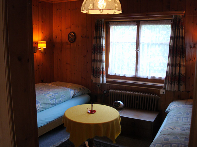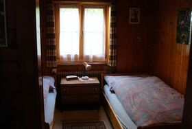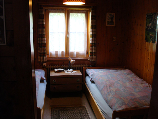 Einfach und zweckmässig eingerichtete, rustikale 3-Zimmer Wohnung mit Balkon. 2 separate Schlafzimmer (alles Einzelbetten mit trennbarer Matratze), Bad / WC. Küche und Wohnzimmer. Grosser Garten zur Mitbenutzung mit den Gästen der Dachgeschoss Wohnung. Separates Spielzimmer (Tischfussball, Bibliothek) kann ebenfalls mitbenutzt werden.