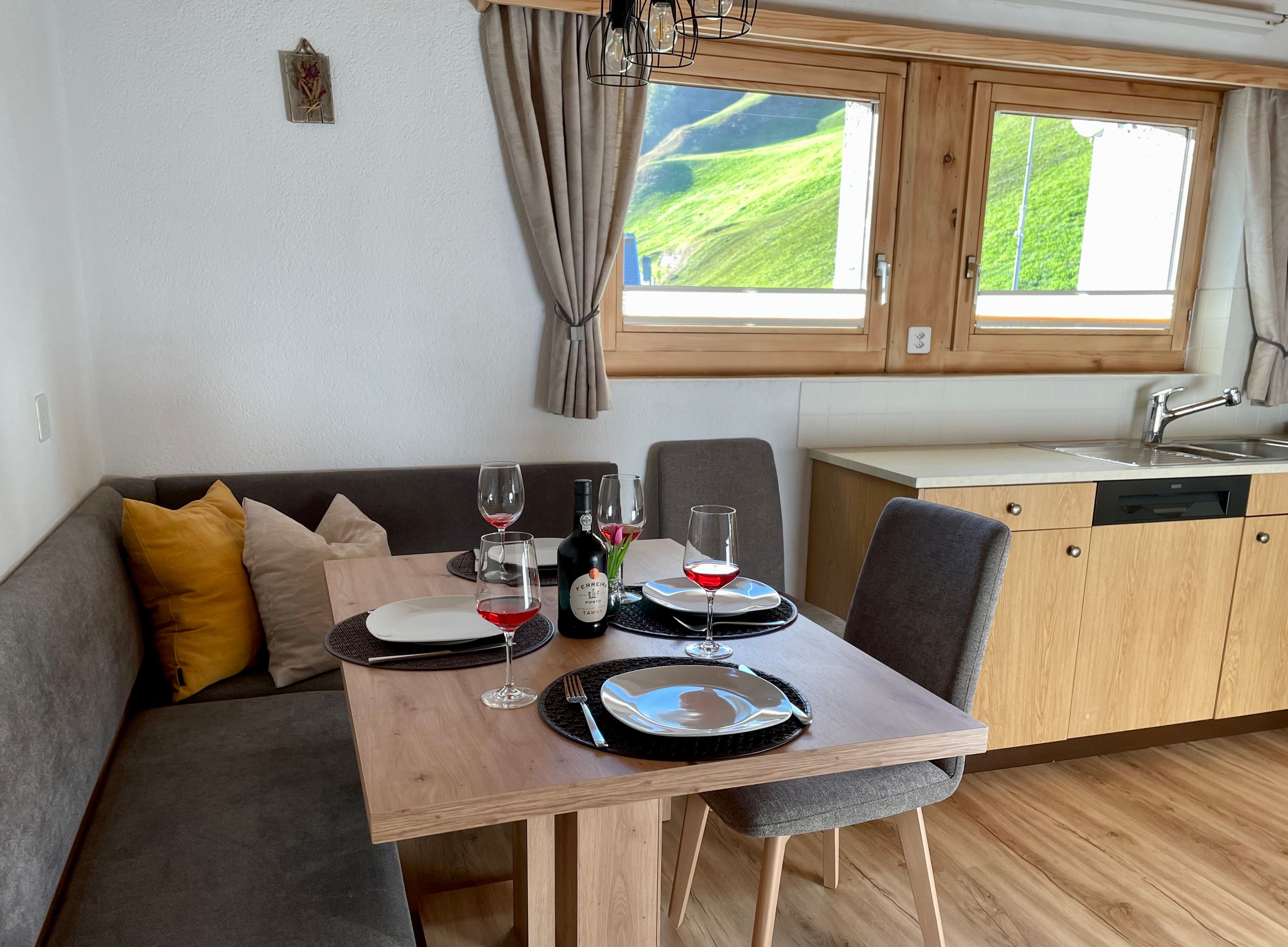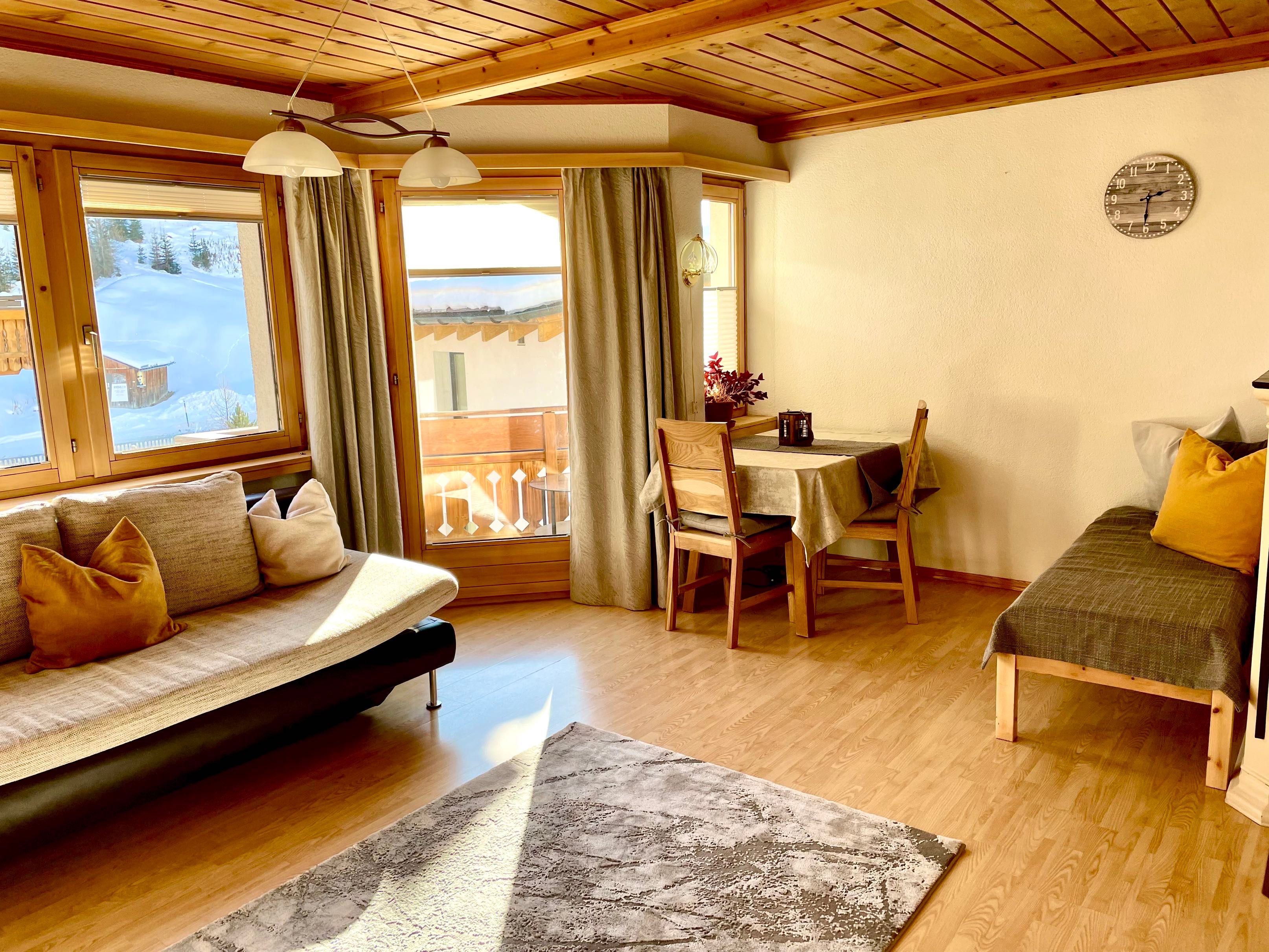 Unsere gemütliche und liebevoll eingerichtete Wohnung befindet sich im zweiten Stock unseres Mehrfamilienhauses. Die komfortable Zweieinhalb-Zimmerwohnung mit Balkon ist ca.50 m2 gross. Der Wohnraum ist mit einer ausziehbaren Schlafcouch(für eine Person oder 2 Kinder) ausgestattet. Ein Holzofen mit einer gemütlichen Samnauner Ofencouch sorgen für Wohlfühlatmosphäre. Eine vollausgestattete Küche mit Essbereich, ein Doppelzimmer sowie ein Bad/ gibt ein Brötchenservice der Ihnen jeden morgen frische Backwaren vor die Türe liefert. Endreinigung CHF: 95.00. Kurtaxe ab 17 Jahren 4.00 pro Person und Nacht. Eine Minute bis zur Skibushaltestelle.