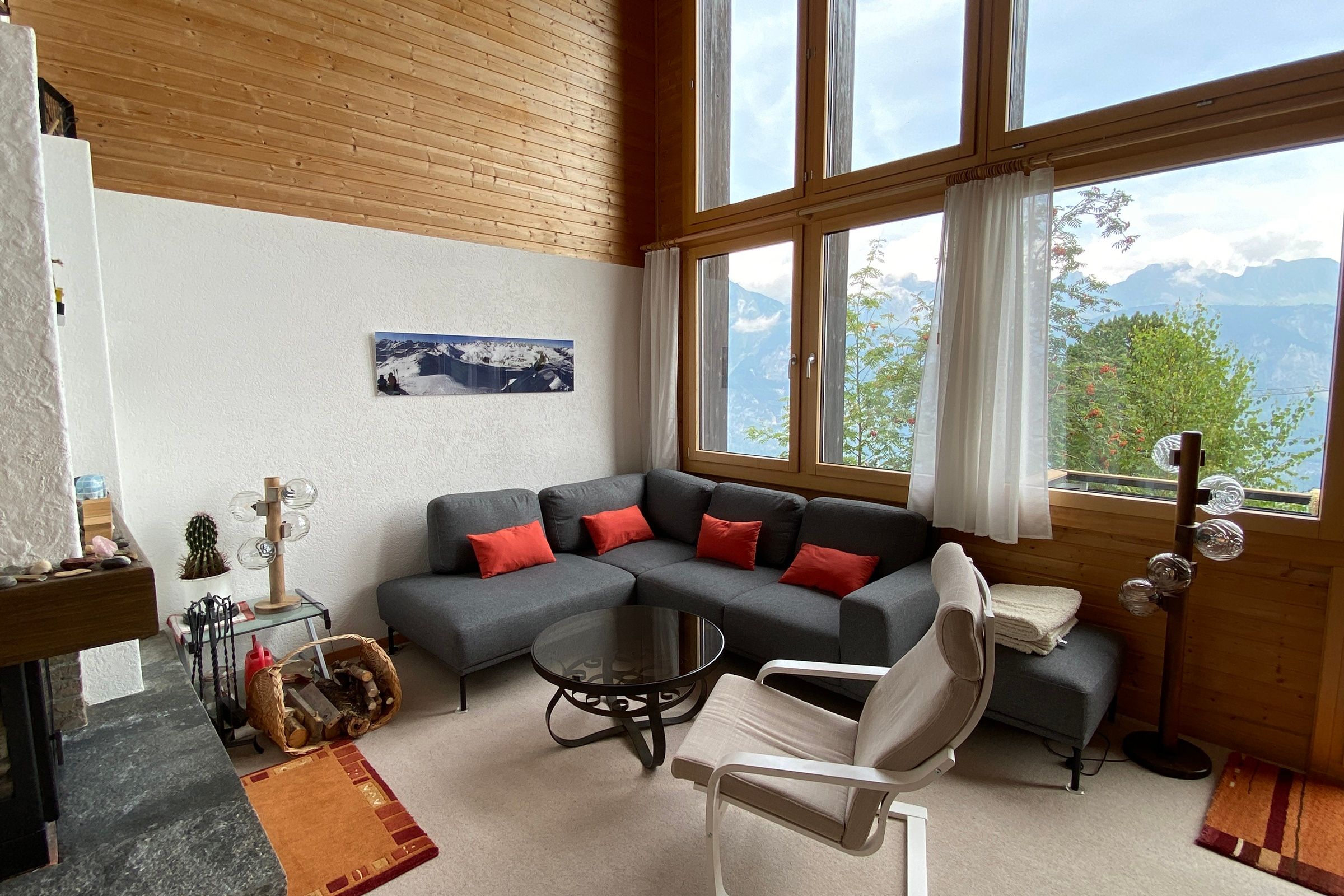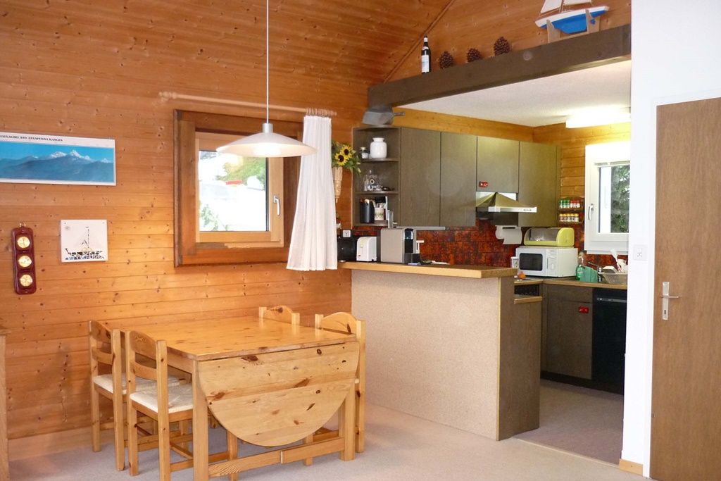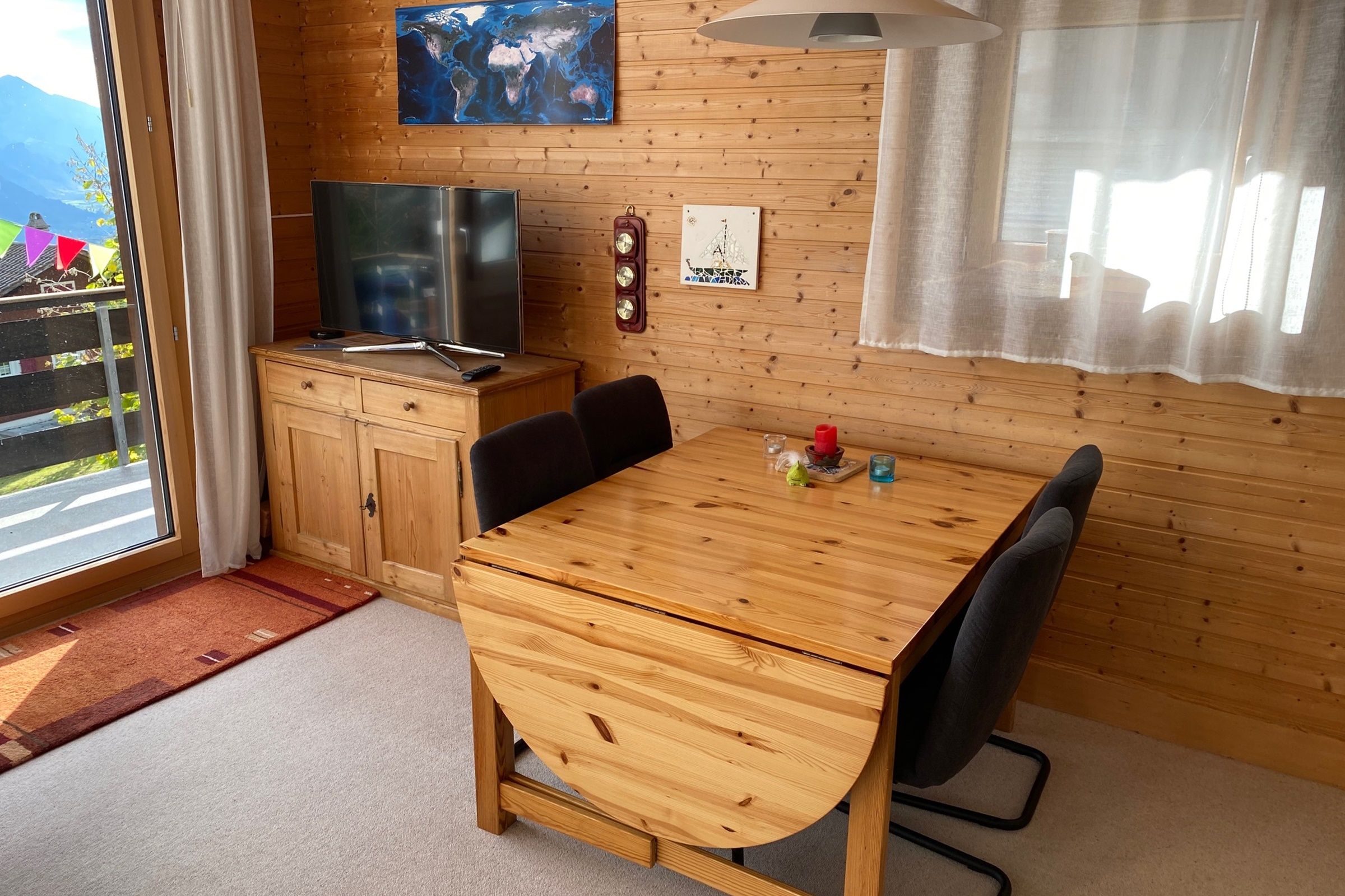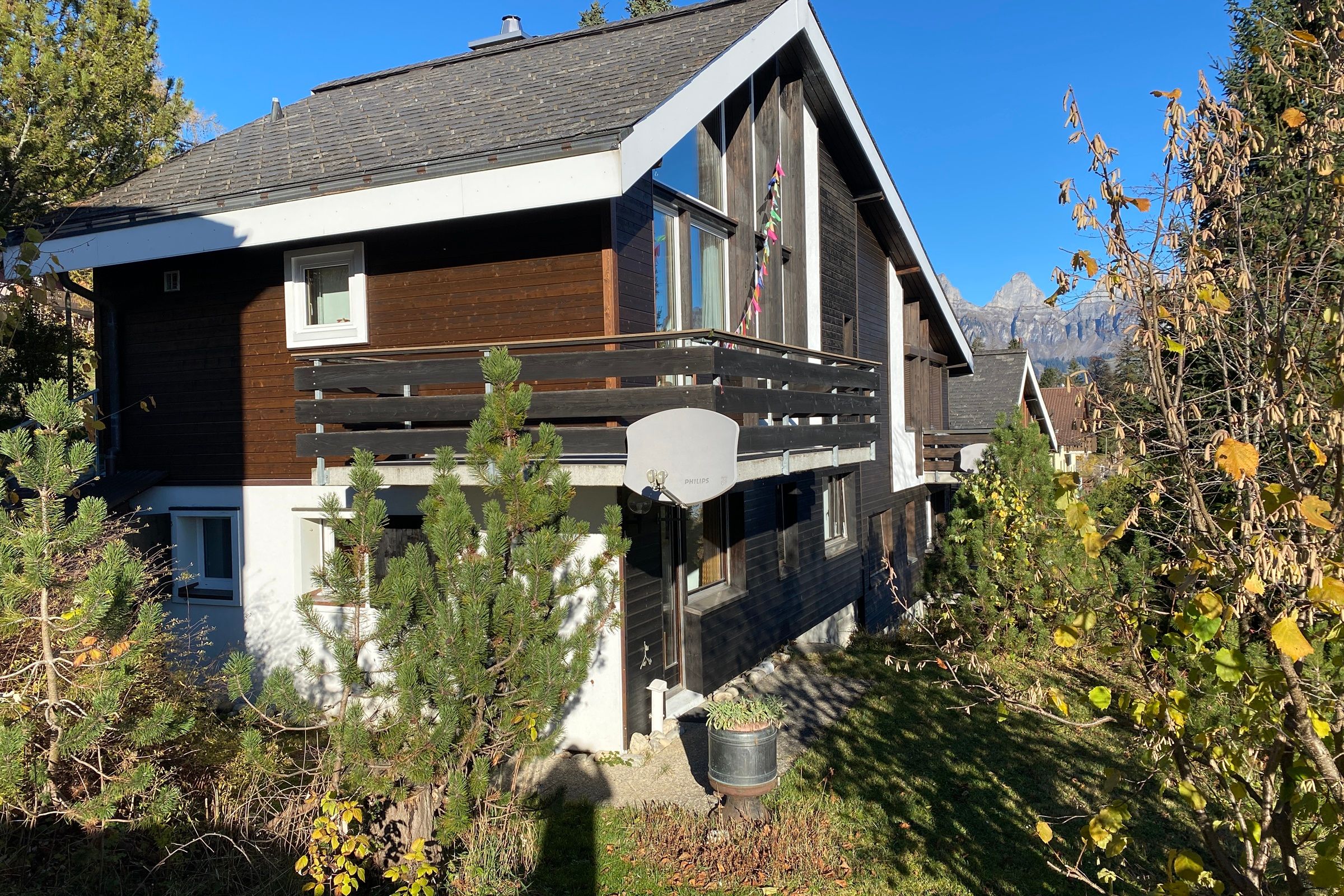 Die 3.5-Zimmerwohnung ist gemütlich eingerichtet. Sie verfügt über einen Balkon mit Sicht auf das Bergpanorama, einen Parkplatz und eine Garage für kleine bis mittlere Fahrzeuge.