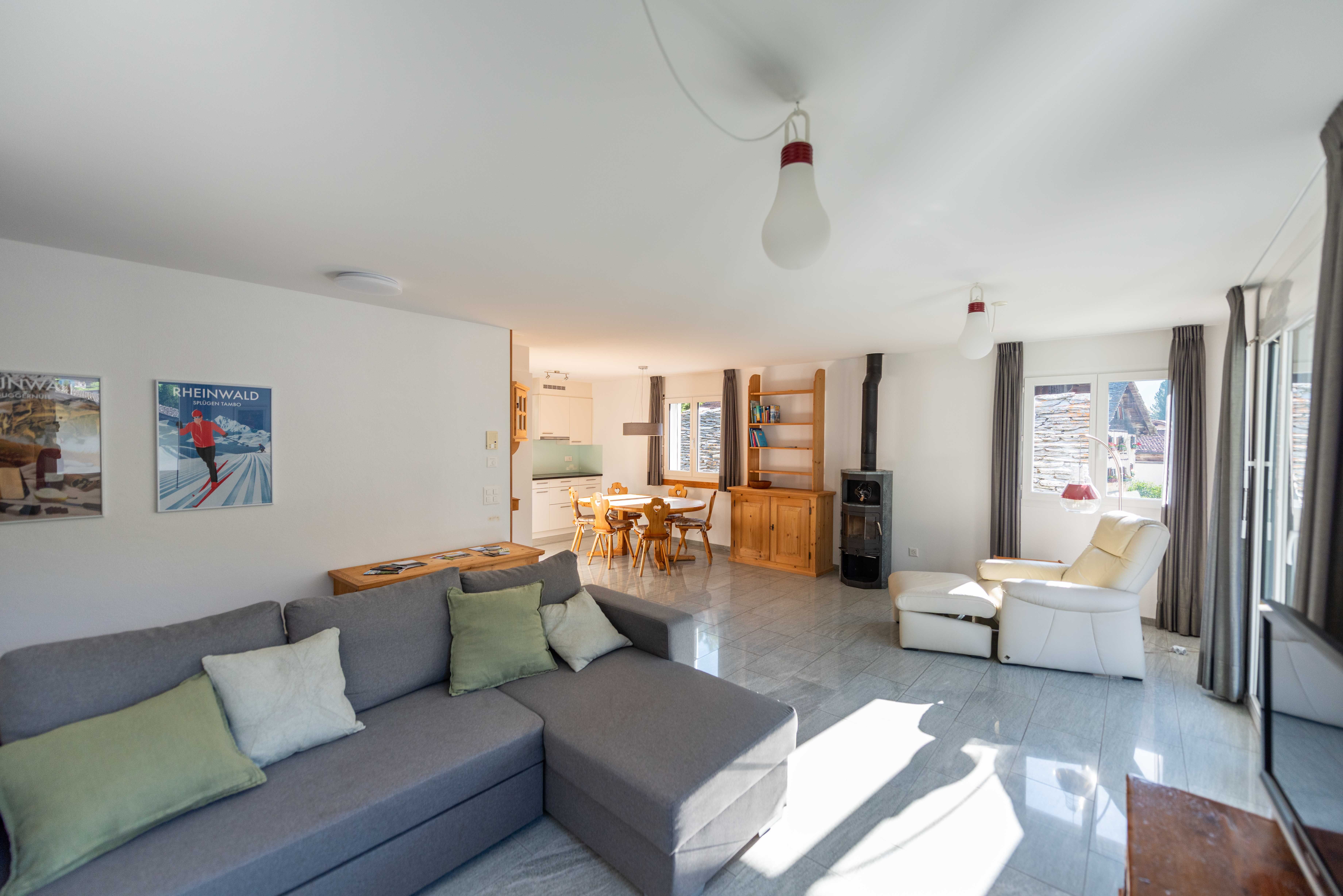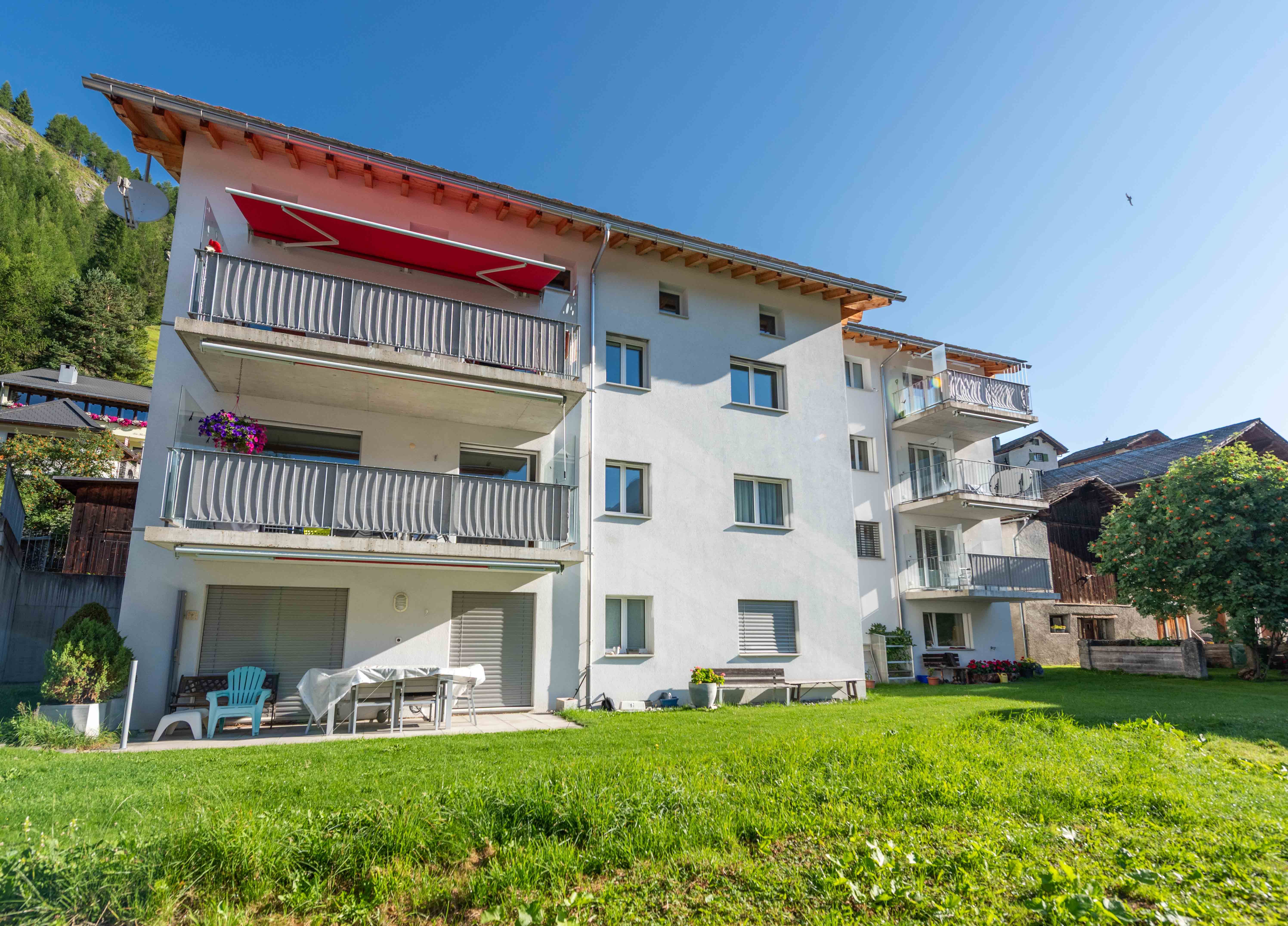 Freistehendes Haus an zentraler Lage mit Parkplatz. Das Haus befindet sich zwei Gehminuten von der Postautohaltestelle und gegenüber von der Metzgerei. Ebenfalls in unmittelbarer Nähe befinden sich die Sennerei, Bäckerei und der Volg. Auch der historische Dorfkern ist sehr nahe gelegen.