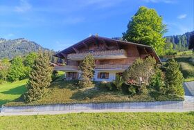 Nachmittag- und Abendsonne, Lage S/W. Eine Panoramasicht Richtung Rougemont und Hausberg Eggli erwartet Sie. Das Chalet ist in einer Sackgasse gelegen, daher ruhig. Die Wohnung ist ein idealer Ausgangspunkt zum Wandern, Skifahren und für andere Aktivitäten. Liebevolle und heimelige Einrichtung sowie möblierter Gartensitzplatz.