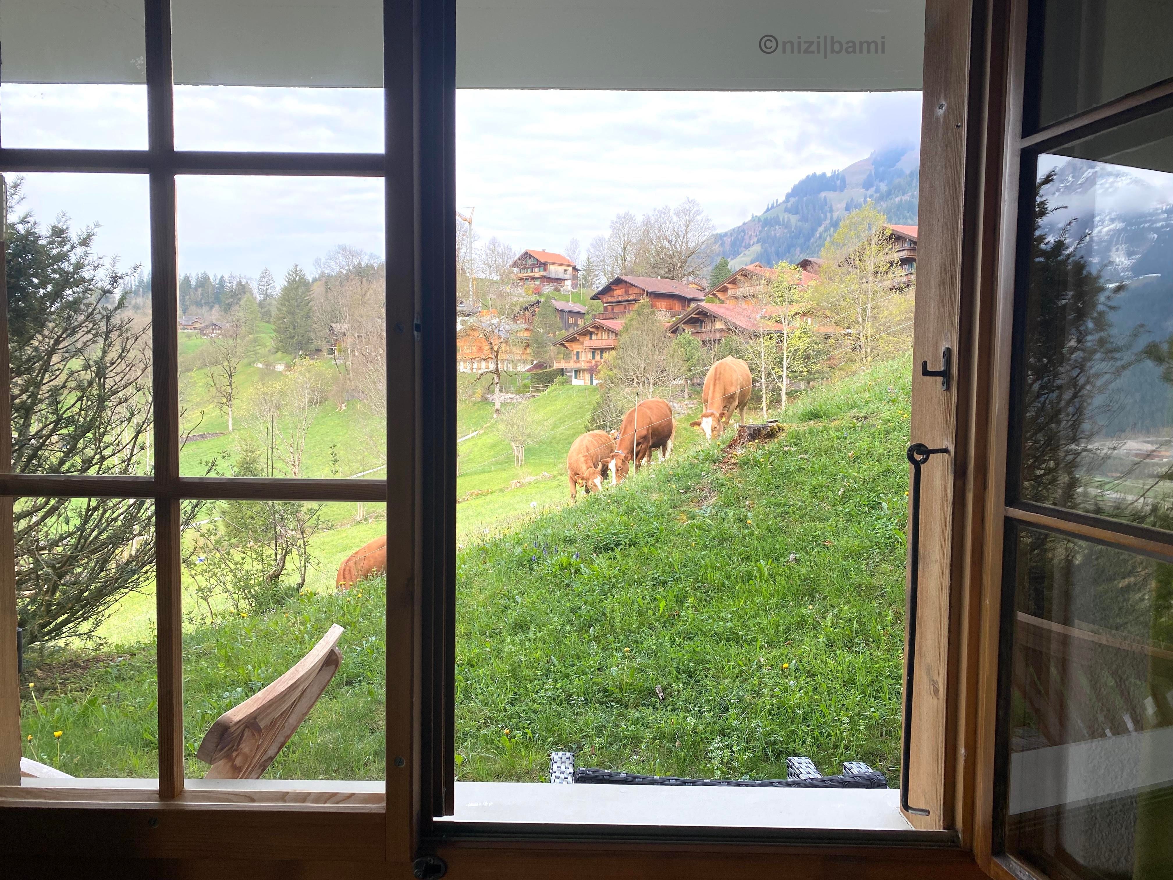 Fussweg: den Hang hinunter nach Saanen in 12 Minuten im Zentrum, in 15 Minuten am Bahnhof Saanen.