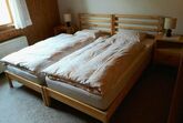 Im Inneren erwartet Sie eine gemütliche Einrichtung, die keine Wünsche offenlässt. Das Erdgeschoss verfügt über eine separate Küche mit moderner Ausstattung wie 4 Kochplatten, Backofen, einem großen Kühlschrank mit Gefrierfach, Geschirrspüler sowie einer Filterkaffeemaschine, Toaster und einem Fondue Set. Ein großes Wohn-/Esszimmer mit Sofa, 3 Sesseln, einem Cheminée, TV, und einem großen Esstisch für 6 Personen, eine Dusche/WC und ein geräumiger Gang runden das Angebot ab. Im Obergeschoss befinden sich drei liebevoll eingerichtete Schlafzimmer und ein Badezimmer mit Badewanne und WC.