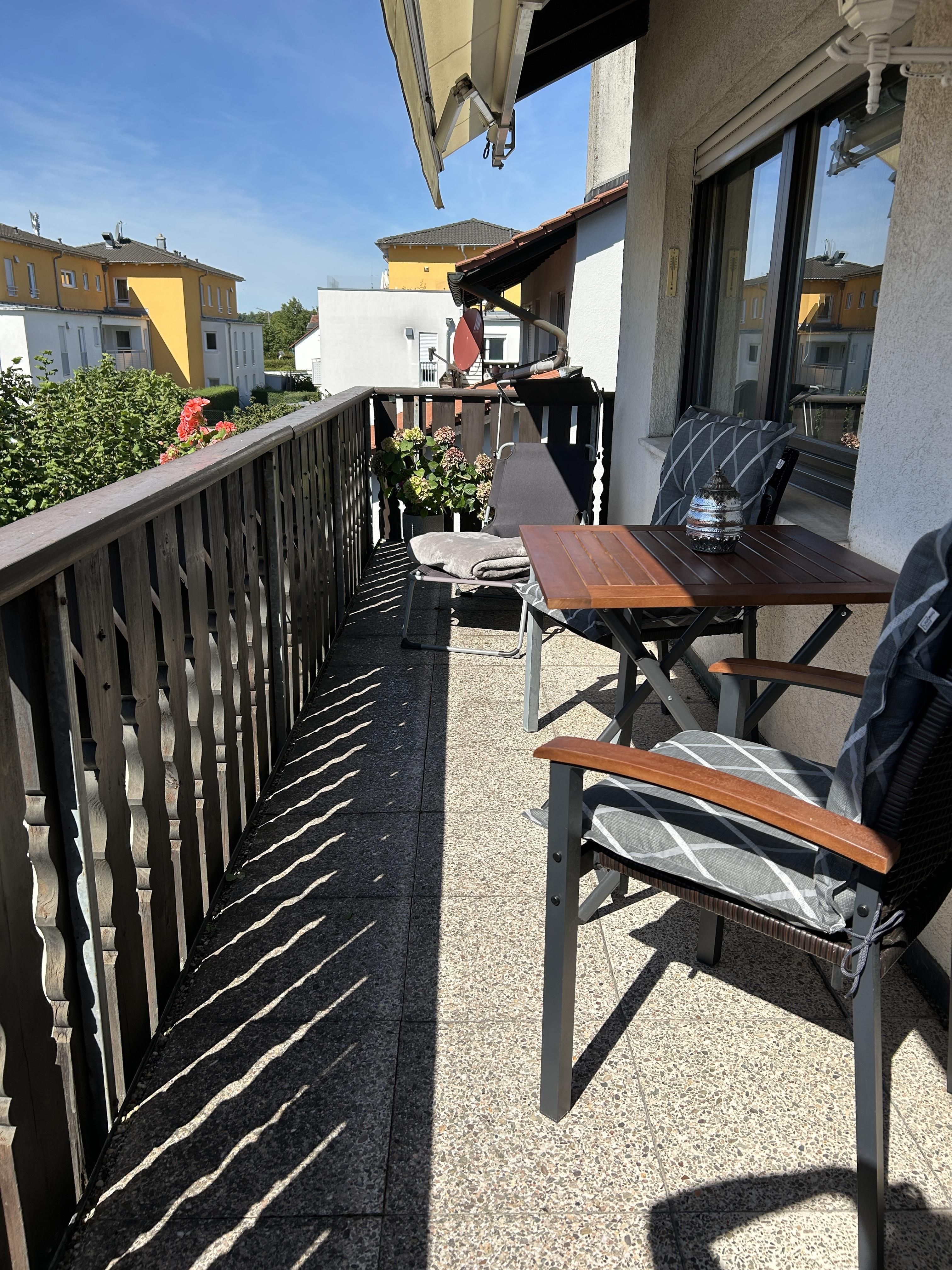 • großer Südbalkon mit Tisch und Stühlen
