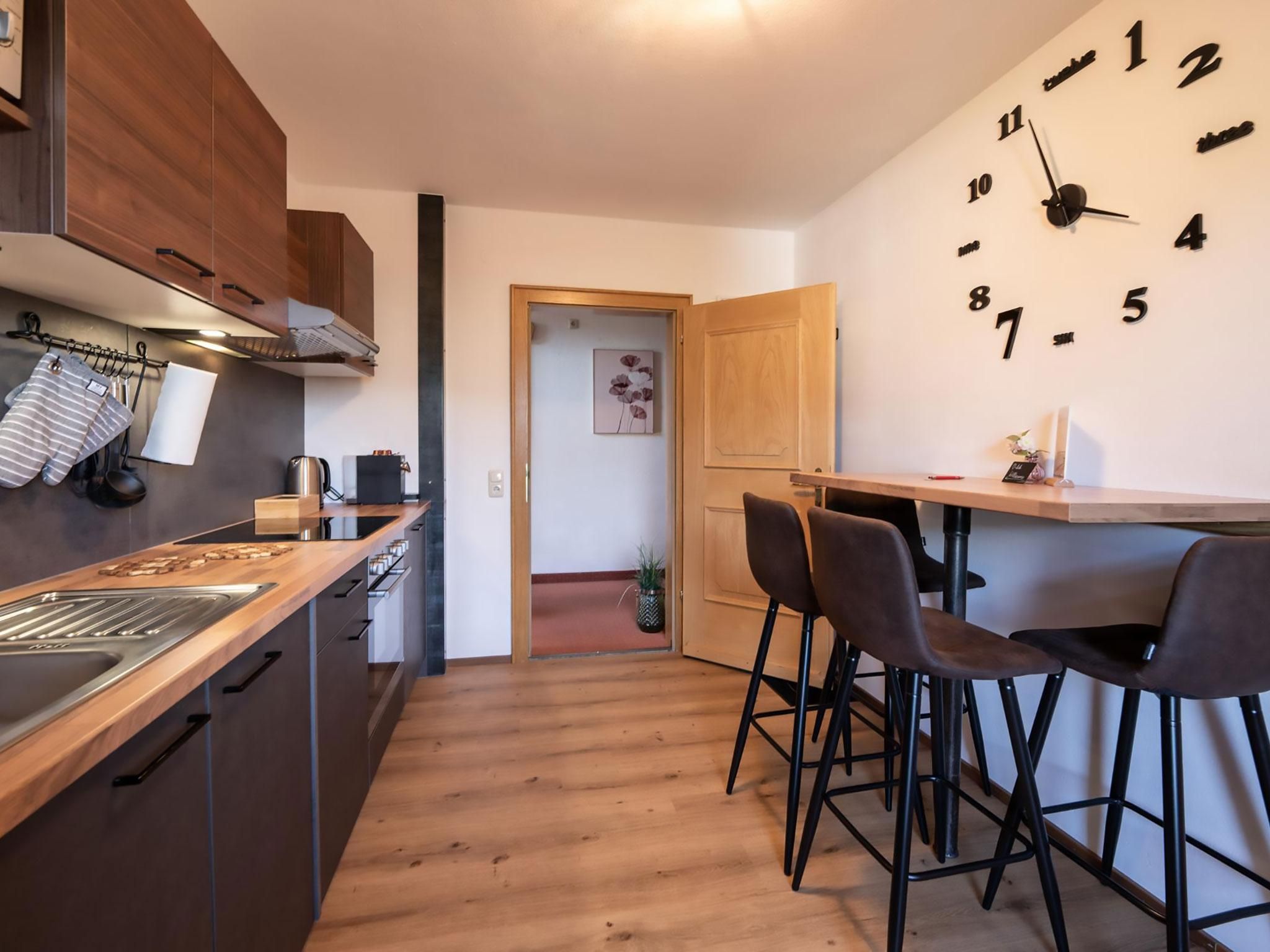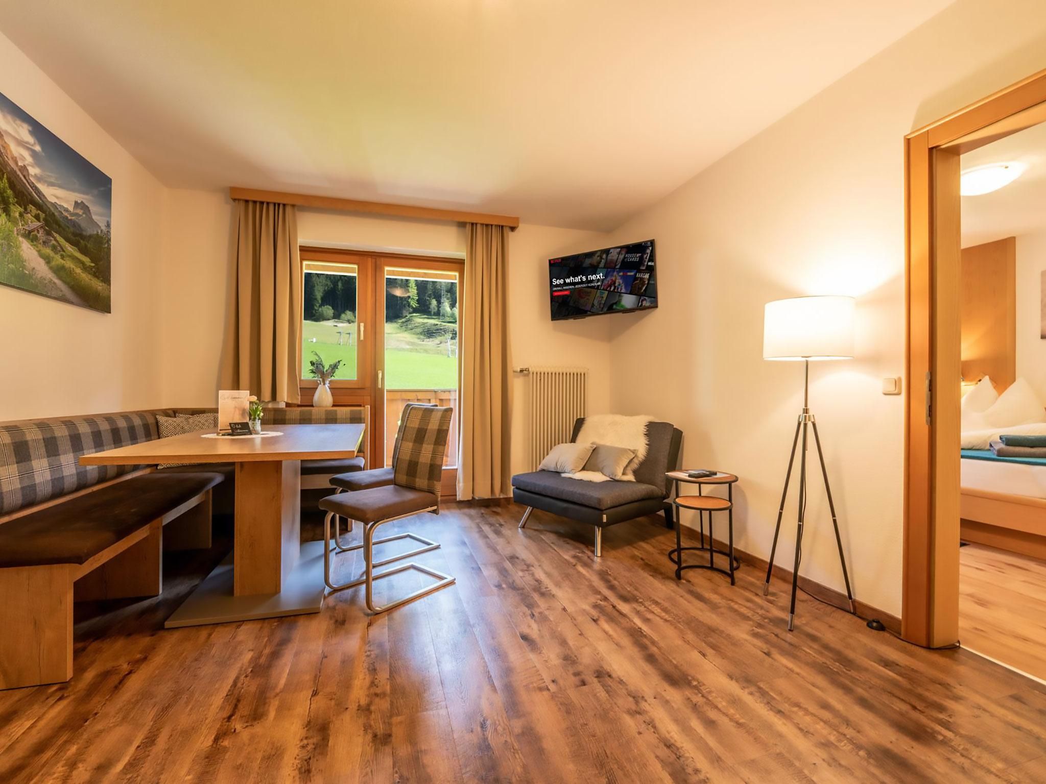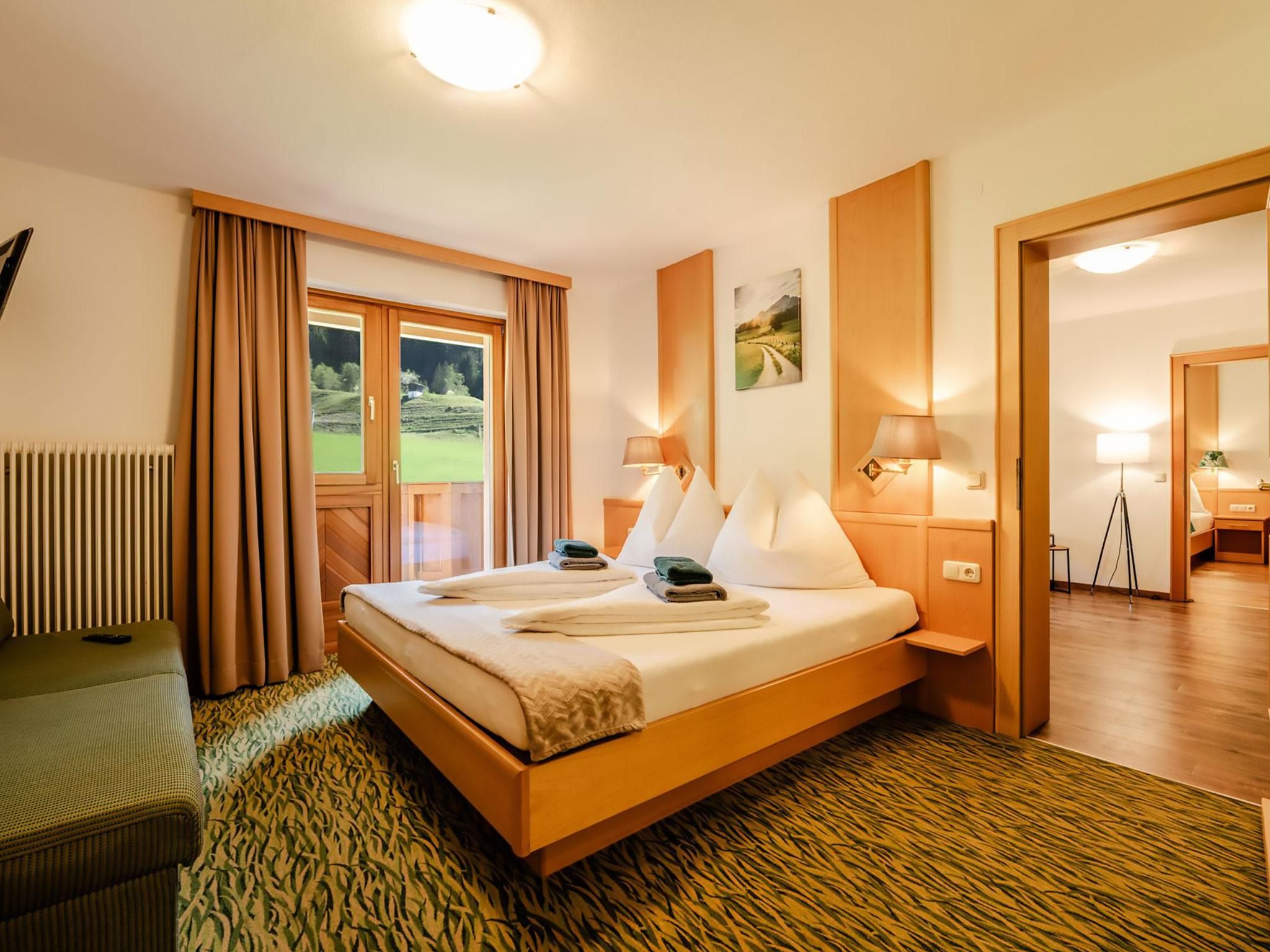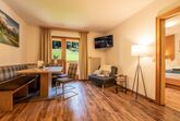 Mit zwei getrennten Schlafzimmern – jeweils mit eigenem Bad und WC – ist dieses Appartement ideal für bis zu 4 Personen. Die moderne Küche mit Essbereich ist bestens ausgestattet. Vom großen Balkon genießen Sie eine wunderschöne Aussicht in die Natur – hier verbinden sich Komfort und Erholung auf höchstem Niveau.