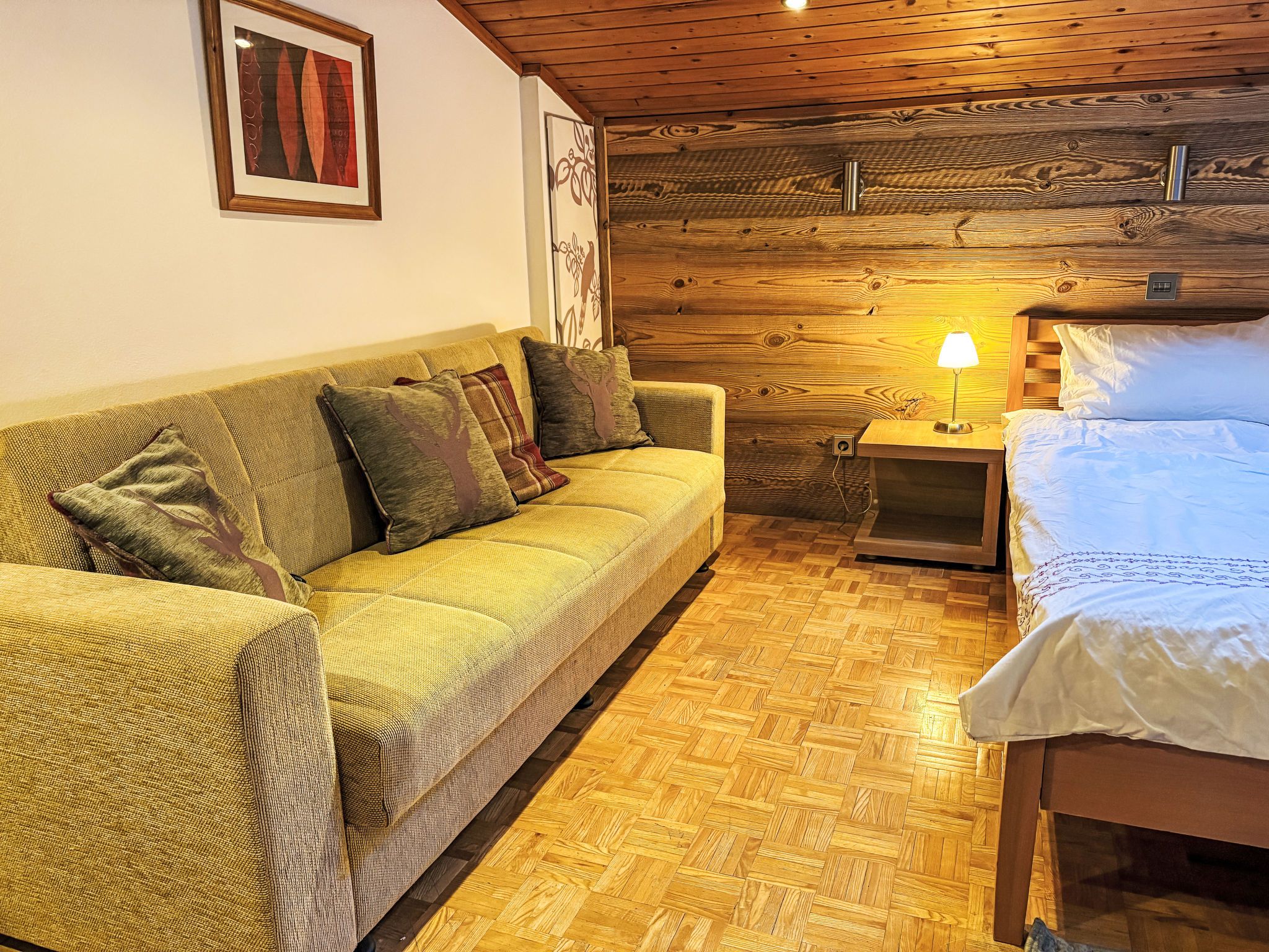Waddington, 3-Zimmer-Wohnung 71 m2 im 2. Stock. Modern und gemütlich eingerichtet: Eingang. Wohn-/Esszimmer mit Esstisch und TV (Flachbildschirm). Ausgang zum Balkon. 1 Zimmer mit 1 Diwanbett und 1 Doppelbett. 1 Zimmer mit 2 Betten. Küche (Backofen, Geschirrspüler, 4 Glaskeramikplatten, Toaster, Wasserkocher, Mikrowelle, elektrische Kaffeemaschine) mit Esstisch. Bad, sep. WC. E-Heizung. Balkon 20 m2. Balkonmöbel. Sehr schöne Sicht auf die Berge und den Fluss. Zur Verfügung: Waschmaschine. Internet (WLAN, gratis). Bitte beachten: Nichtraucher-Unterkunft. Rauchmelder. 50618-002031-2020