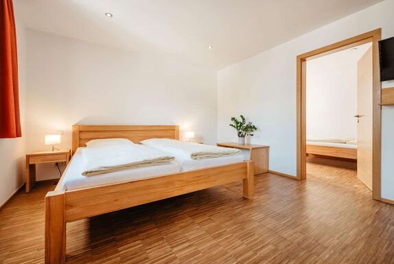 Das Komfort-Dreibettzimmer ist mit einem Doppelbett sowie in einem weiteren Zimmer mit einem Einzelbett ausgestattet. Absolut ruhige Lage. Das Zimmer ist mit Vollholzmöbel und Echtholzboden eingerichtet. Eigenes Badezimmer mit Regendusche, Radio im Bad, Handtuchtrockner und Föhn sind standardmäßig inbegriffen.