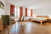 Ein Flachbildfernseher ist natürlich ebenso im Zimmer. Eine kleine Sitzecke lädt zum Verweilen ein.