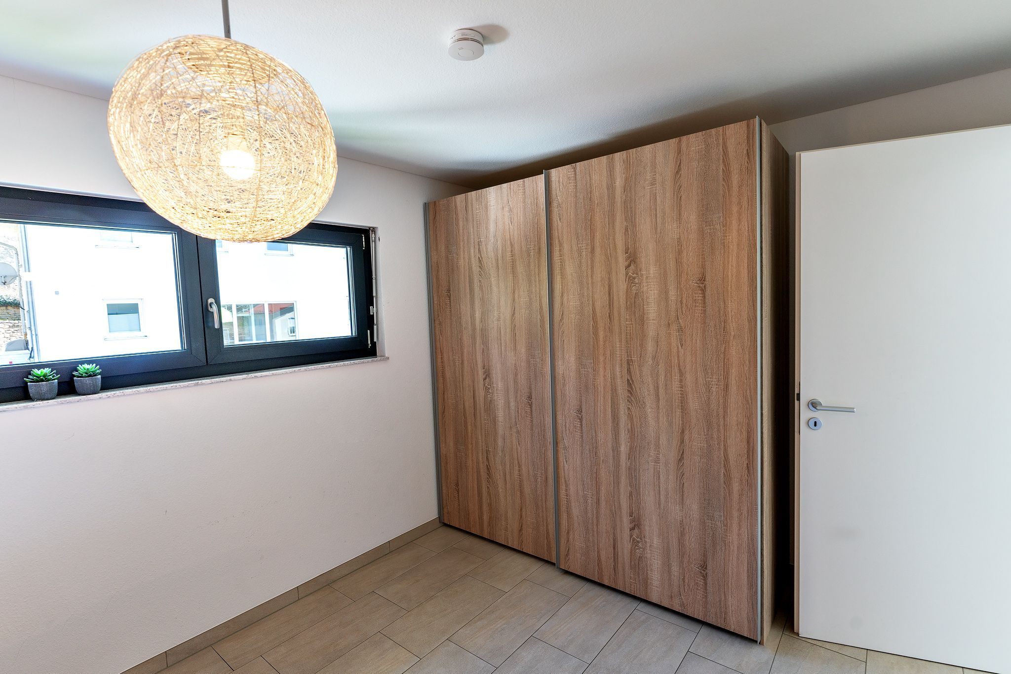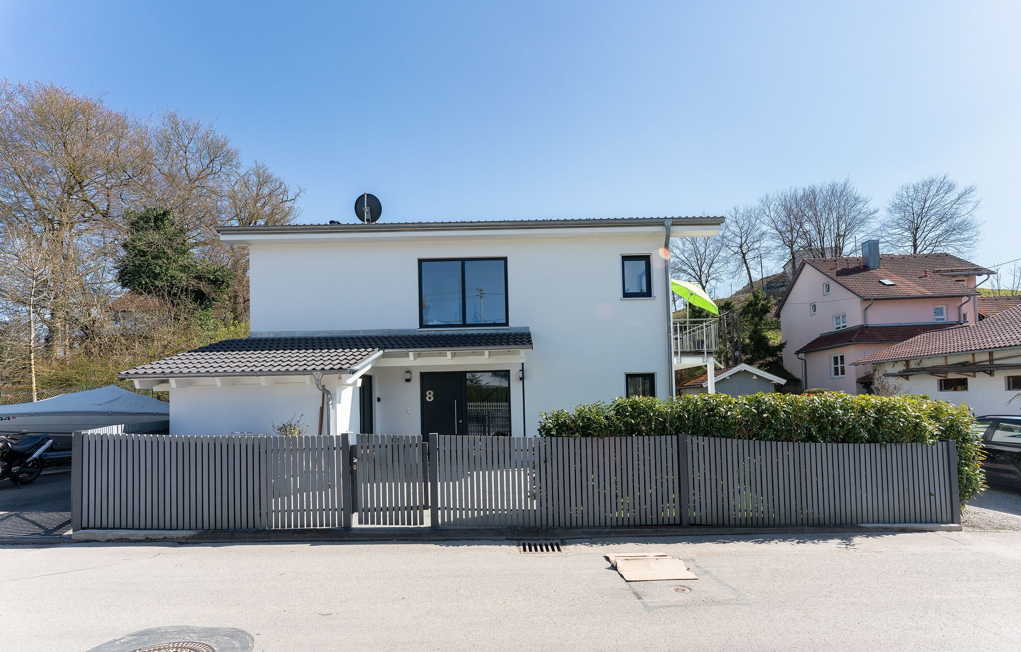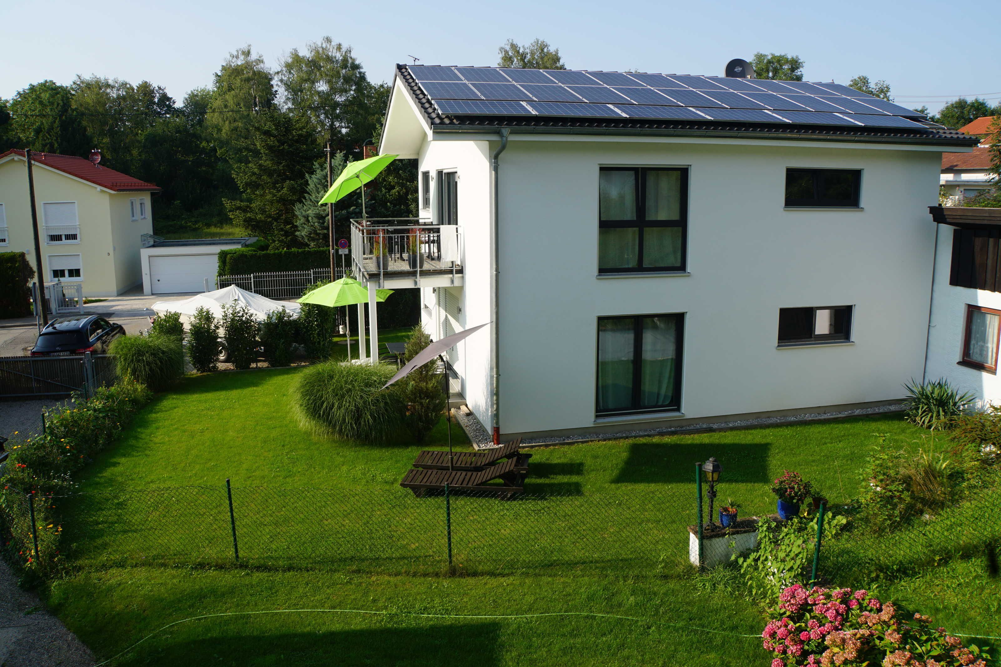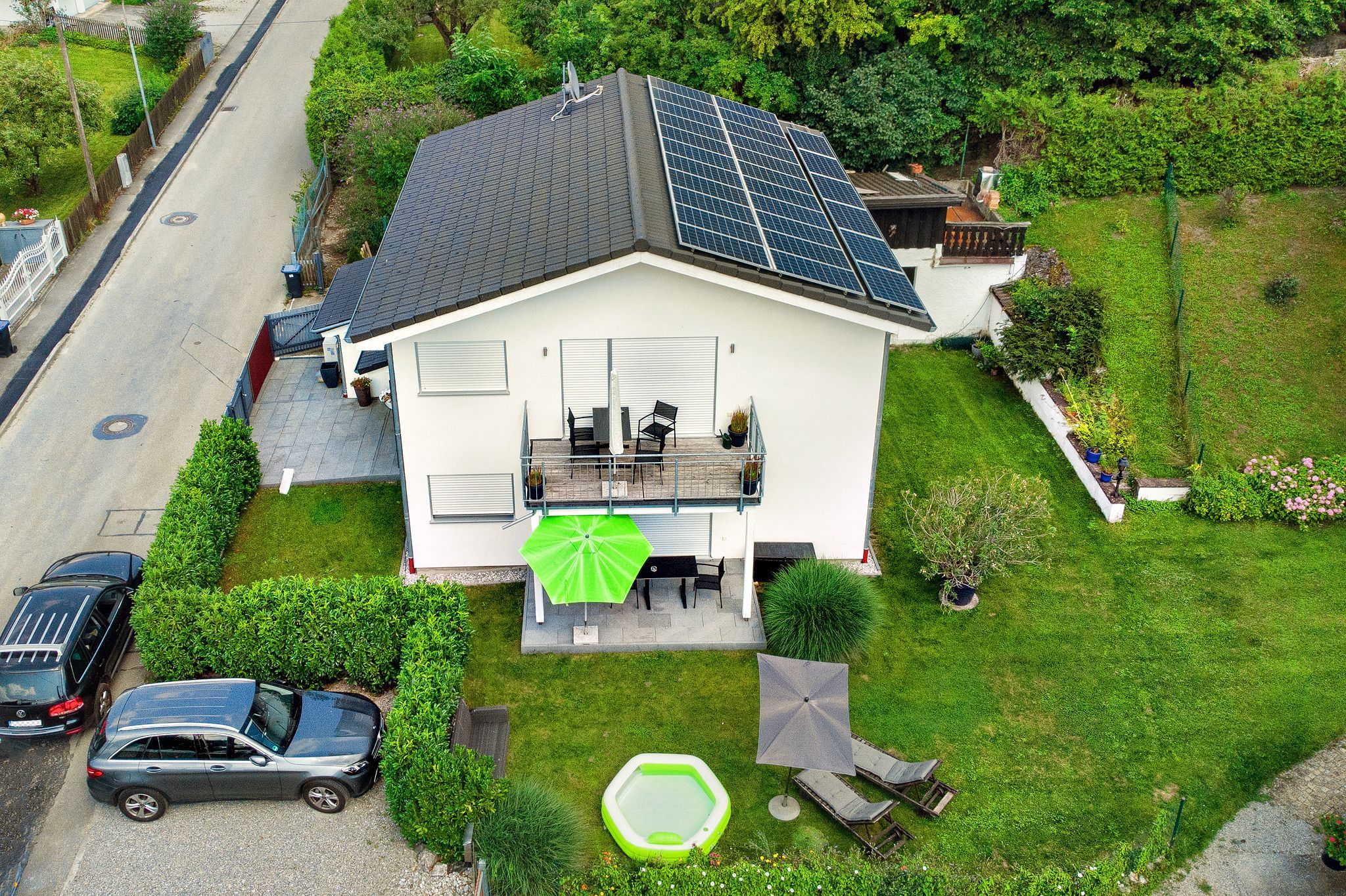 Das helle und moderne Haus bietet im OG optimal Platz für eine Familie mit ein oder zwei Kindern. Es liegt familienfreundlich und verfügt über einen großen, offenen Wohnbereich, zwei Schlafzimmer und ein geräumiges Badezimmer mit großer barrierefreier Dusche und großen Balkon. Die Küche ist mit Kühlschrank und Geschirrspüler ausgestattet, Autostellplätze stehen frei zur Verfügung. Das Haus wir mit einer Luftwärmepumpe und Fußbodenheizung über Fotovoltaik mit Akkutechnologie zu 100% CO2-frei beheizt.