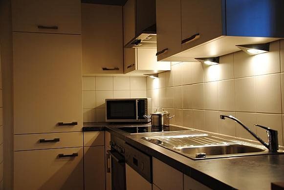Die Einbauküche verfügt über einen Backofen, Herd mit Ceranfeld, Geschirrspüler, Microwelle und Waschmaschine. Selbstverständlich steht ein Kühlschrank mit Gefrierfach und eine Kaffeemaschine zur Verfügung.