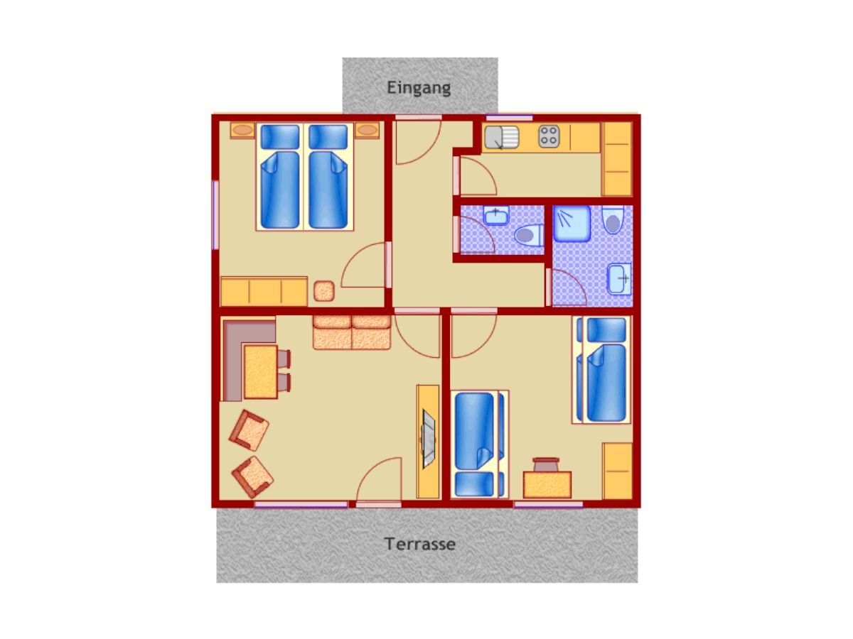 Das zweite Schlafzimmer bietet 4 Personen Schlafmöglichkeit und ist mit 2 Etagenbetten eingerichtet.