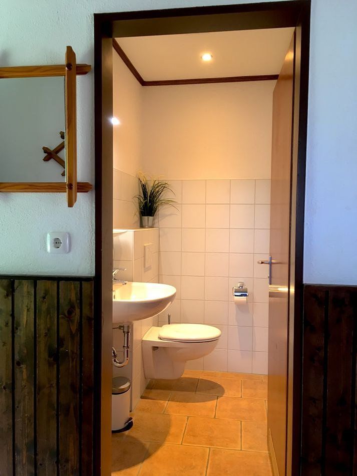 Neben dem Badezimmer mit WC und Dusche verfügt das Haus auch über ein WC mit weiterer Waschgelegenheit.