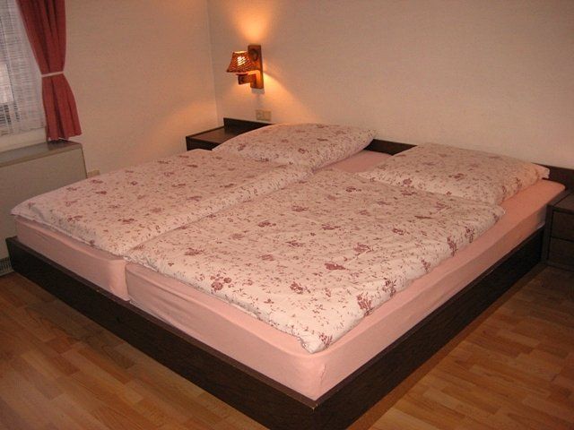 Das Schlafzimmer bietet 2 Personen Schlafmöglichkeit, ist im Landhausstil eingerichtet, hat einen herrlichen Ausblick und Abendsonne.