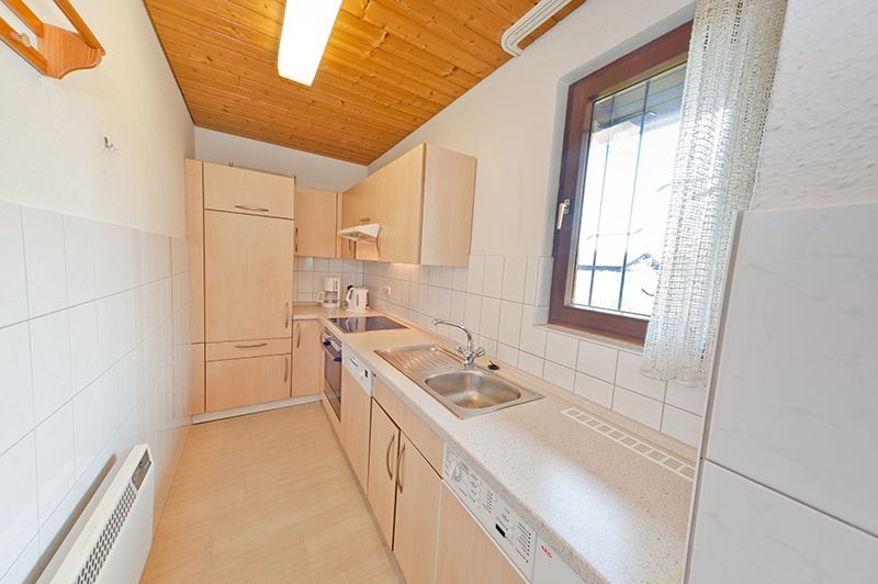 In der Küche finden Sie eine großzügige Auswahl an Geschirr und Töpfen. Die Ausstattung ist komplett mit Geschirrspüler, Waschmaschine, Elektroherd, Kühlschrank mit Gefrierfach und Kaffeemaschine vorhanden.