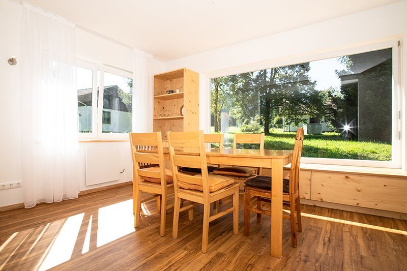 Vom Panoramafenster und der Terrasse haben Sie einen wunderbaren Südblick auf die Alpspitz und die Reutter Wanne. Im anliegenden ebenen Garten können Sie sich entspannen und erholen.