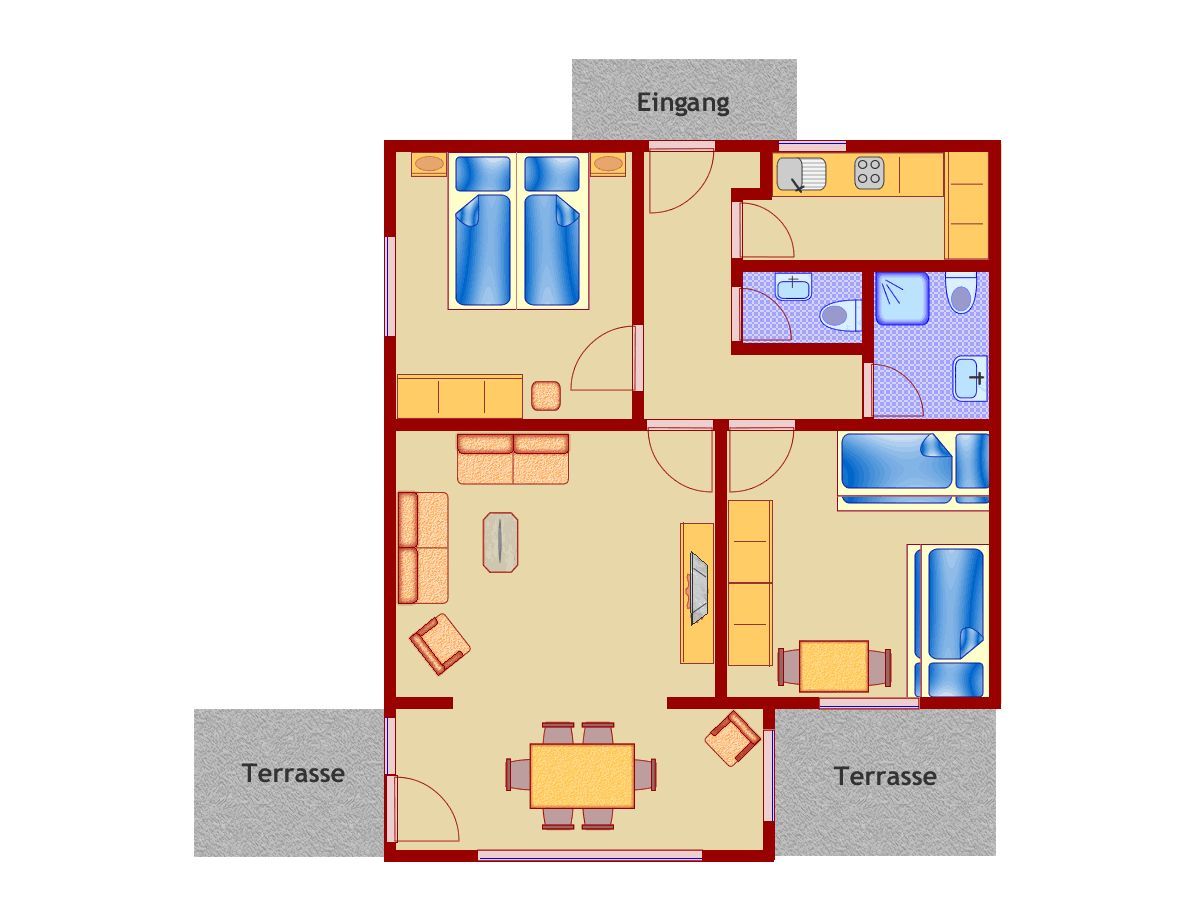 Neben einer voll ausgestatteten Küche, einem Bad mit Dusche und WC ist unser Ferienhaus mit 2 Schlafzimmern und einem Wohn-Esszimmer ausgestattet.