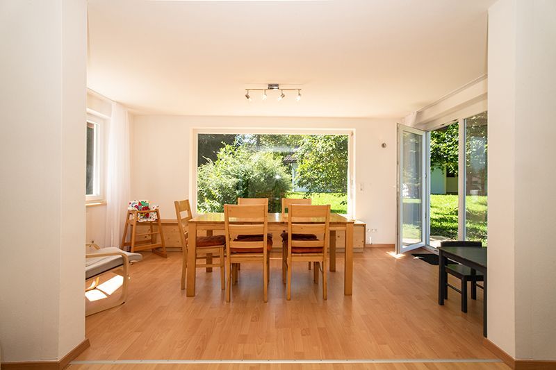 Vom Panoramafenster und der Terrasse haben Sie einen wunderbaren Südblick auf die Alpspitz und die Reutter Wanne. Im anliegenden ebenen Garten können Sie sich entspannen und erholen.