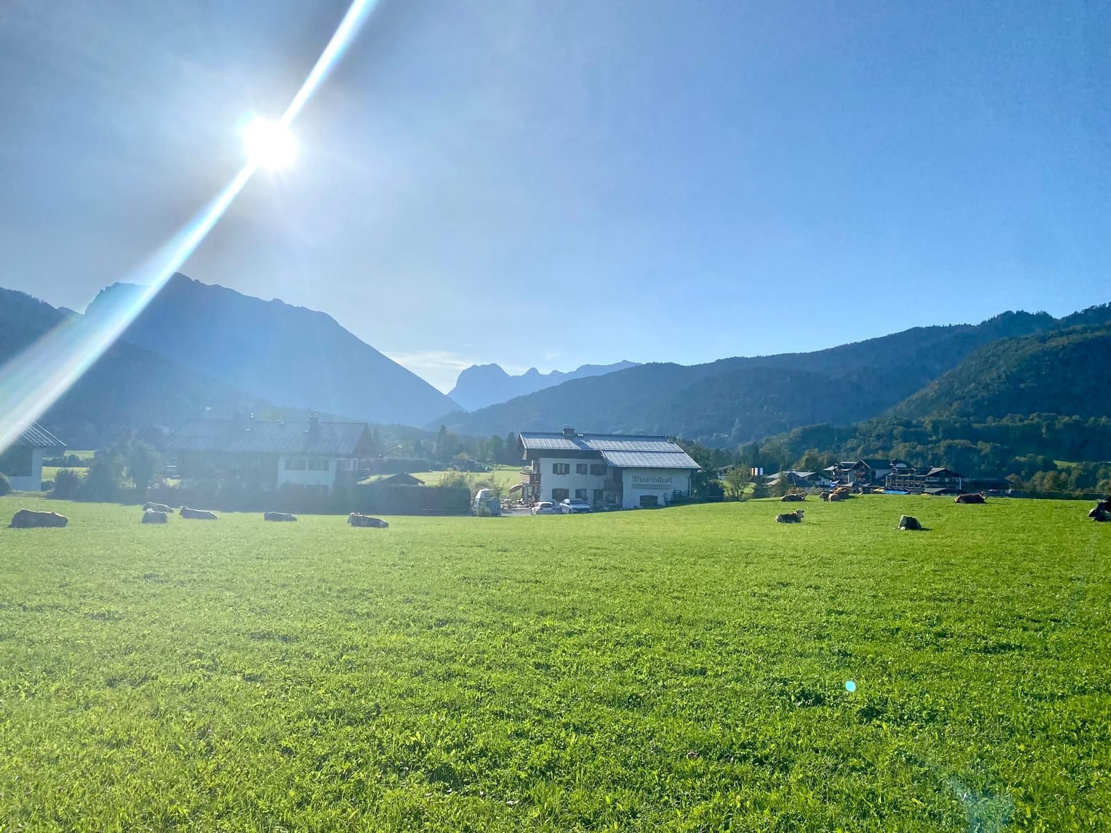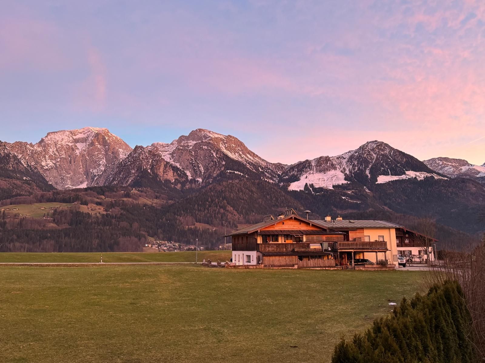 Umgeben von grünen Wiesen und herrlichem Bergpanorama lädt der großzügige Balkon zum Erholen ein.